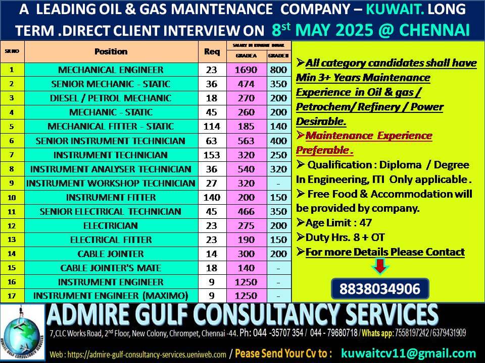 A LEADING OIL & GAS COMPANY -UAE . LONG TERM . DIRECT CLIENT INTERVIEW ON 24TH DECEMBER 2025 @ CHENNAI