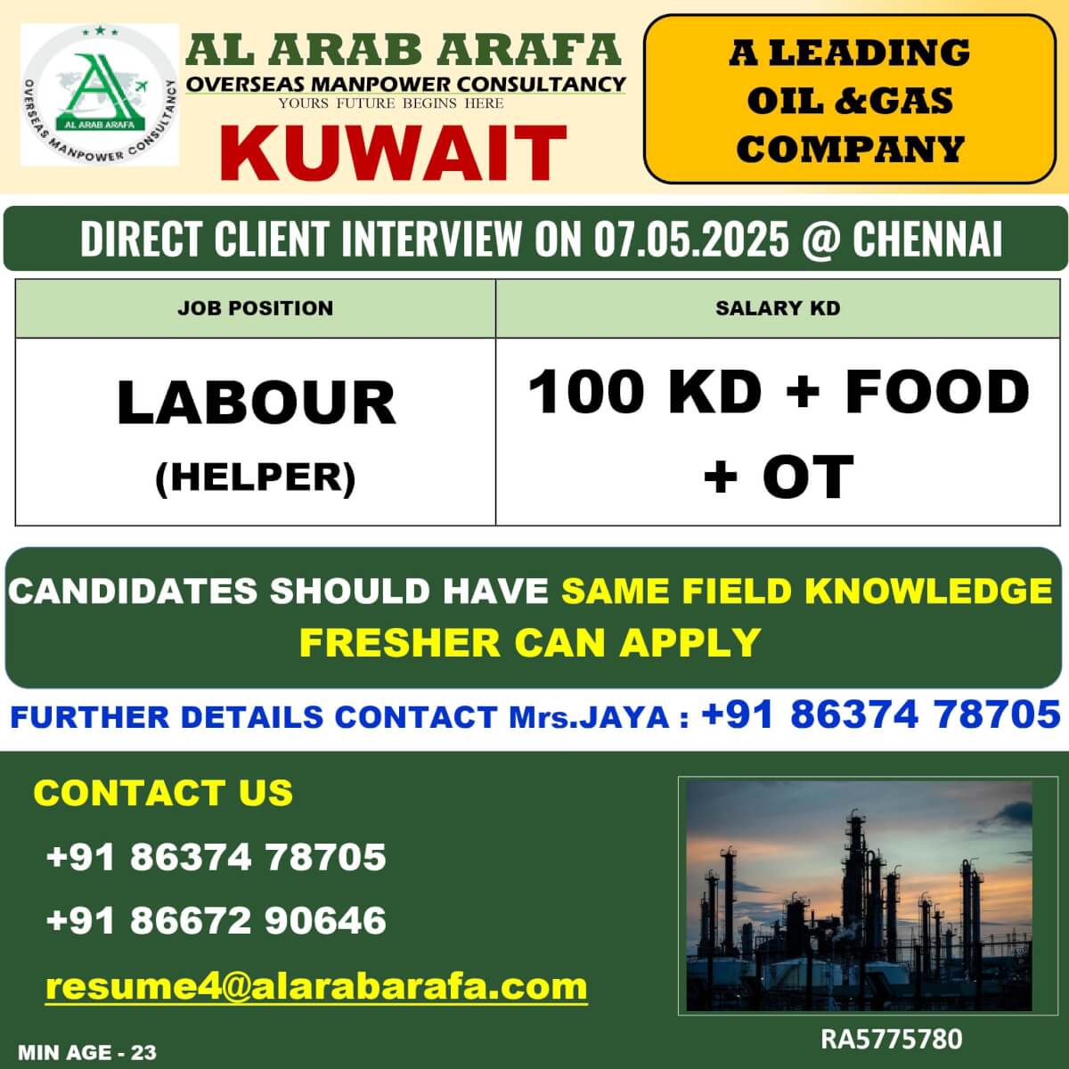 FURTHER DETAILS CONTACT MS.KALISH - 9840998065 EMAIL ID - resume3@alarabarafa.com