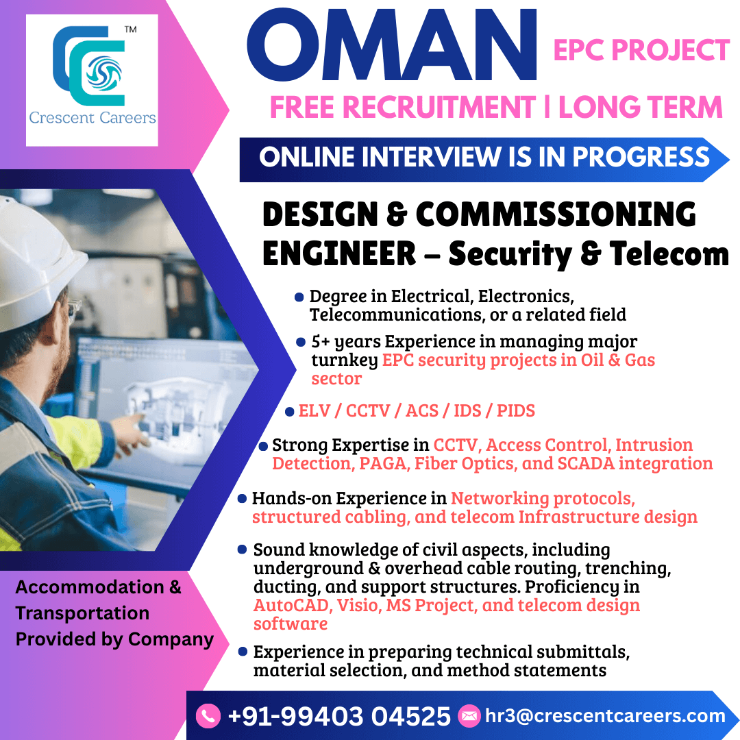 Hiring for Building Maintenance Project at UAE ONLINE INTERVIEW IN PROGRESS Contact: +91-91504 32247 Send CV to: cc1@crescentcareers.com
