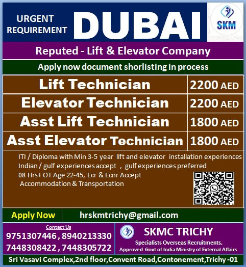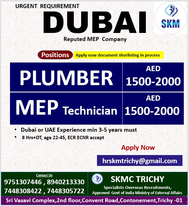 DUBAI - HCFF LLC COMPANY - DIRECT CLIENT INTERVIEW 15-12-2025 @ TRICHY - EMPLOYMENT VISA JOB POSITIONS: MASON - BRICK MASON - PLASTER MASON - TILES MASON - MARBLE HELPER / CLEANER CARPENTER MIN 3 - 5...