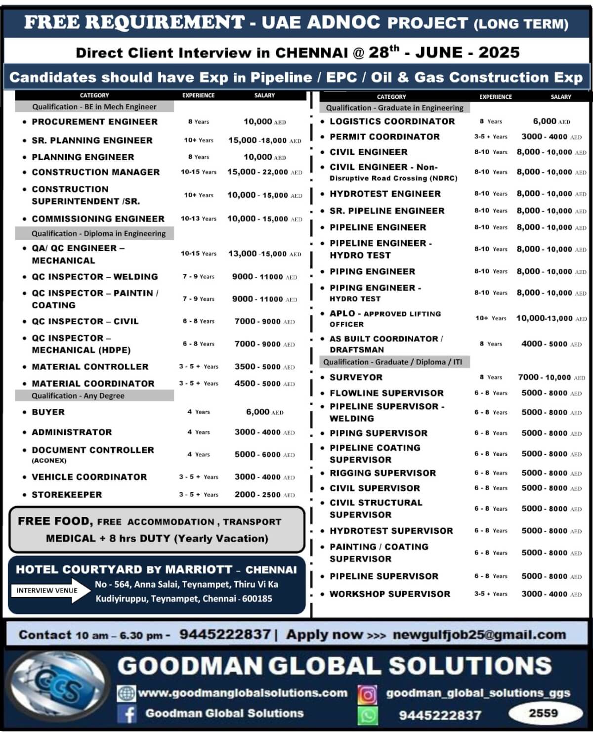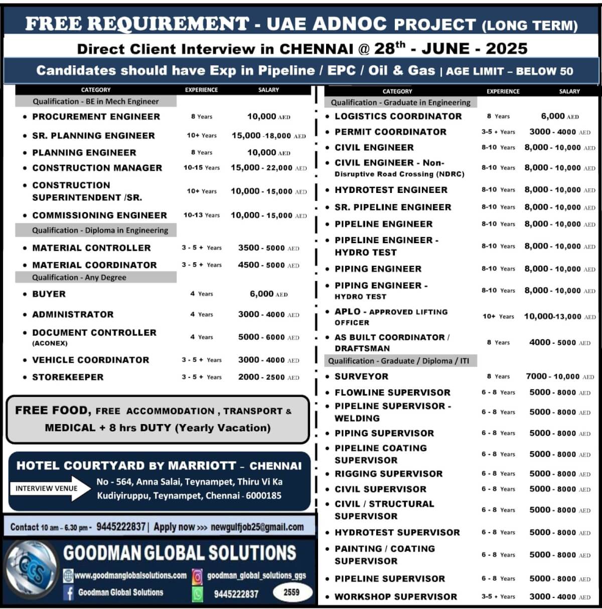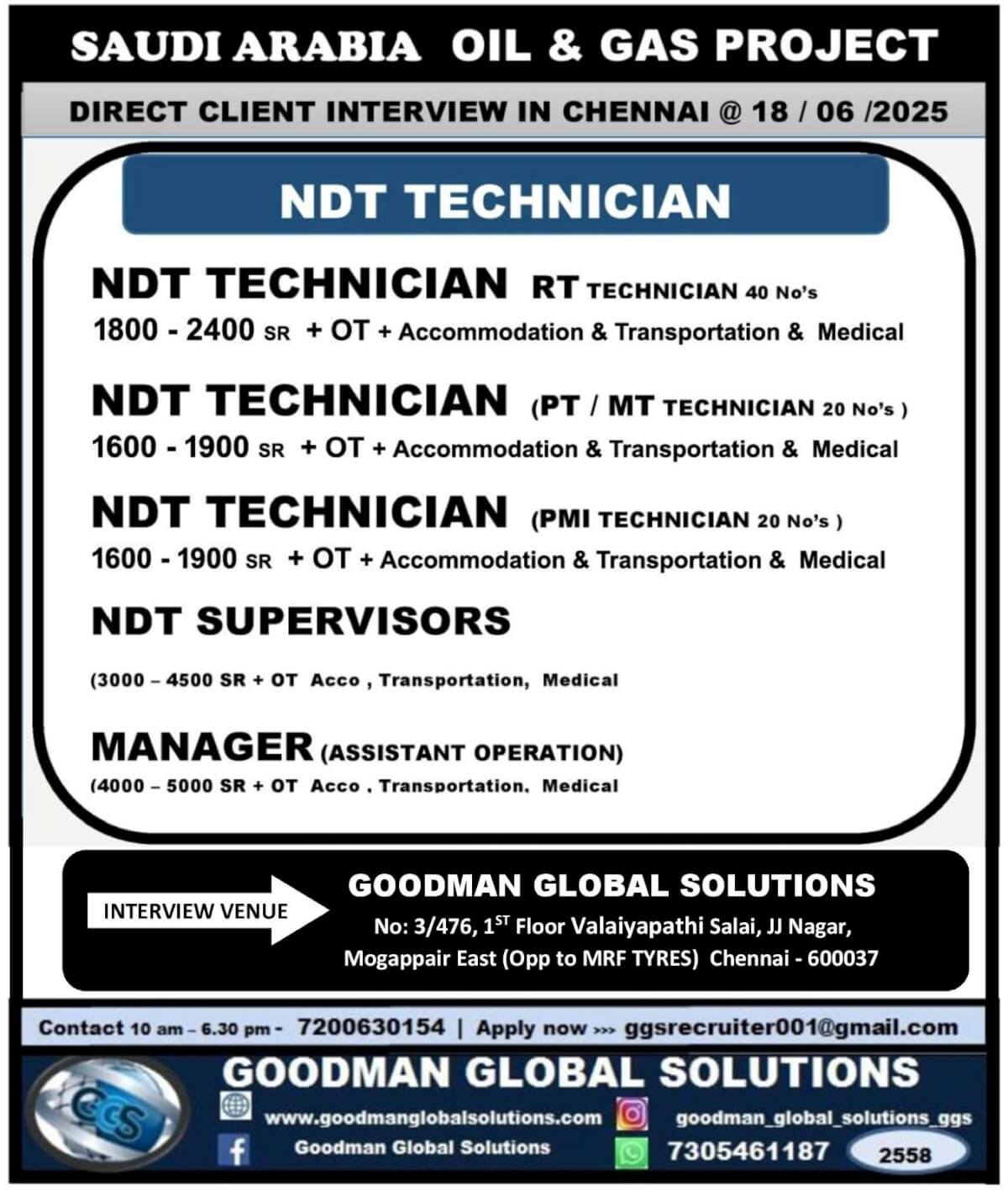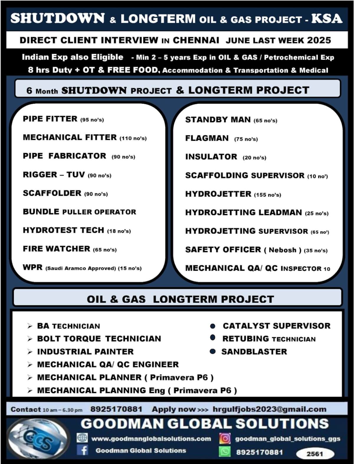 SAUDI ARABIA - OIL & GAS PROJECT ( LONG TERM ) ONLINE INTERVIEW - 3rd Week December