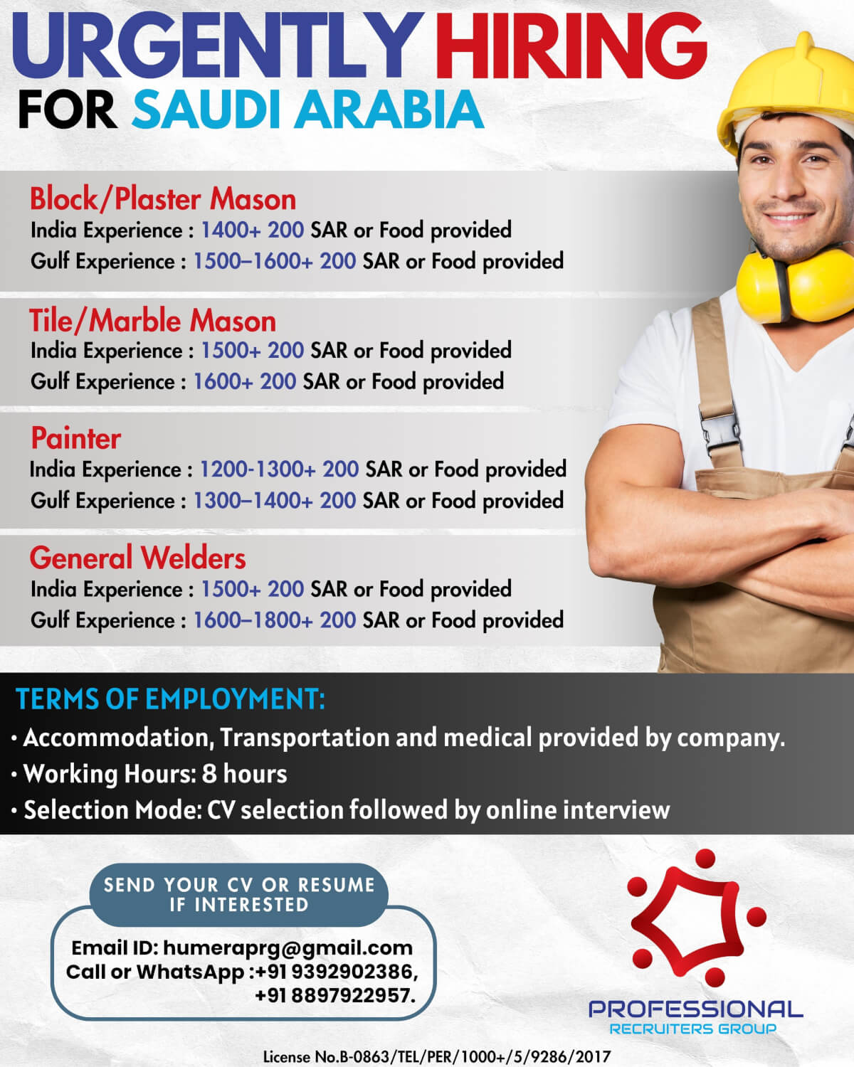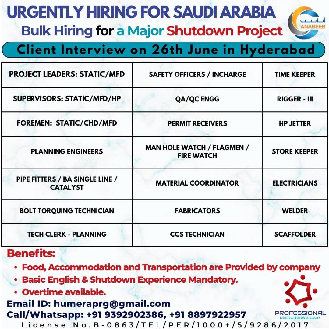 Hiring Alert – Saudi Arabia Excellent career opportunities with great benefits. If this matches your profile, don’t wait—apply now