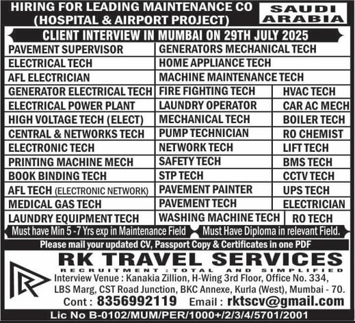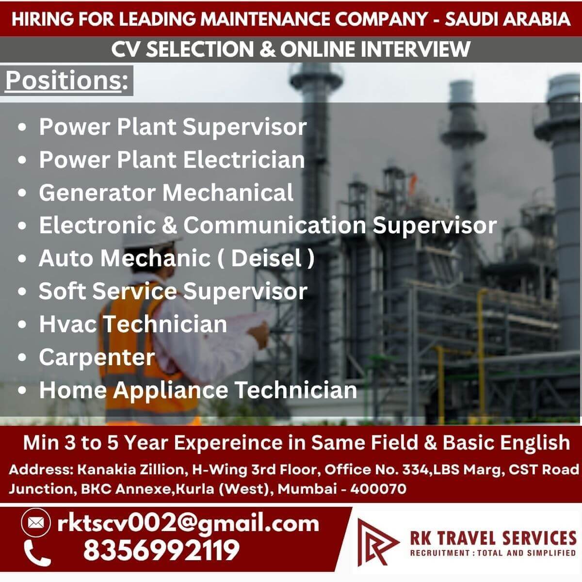 Hiring For Leading Maintenance Company Saudi Arabia-Shalfa