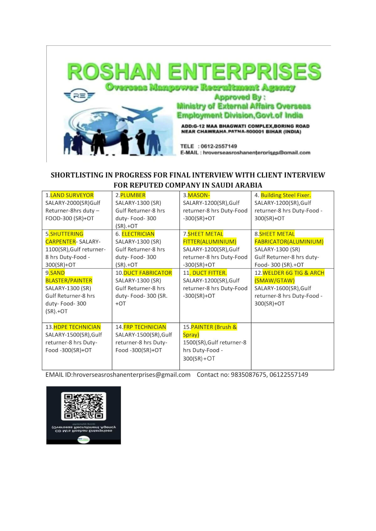 1. URGENT REQUIREMENT FOR BAHRAIN –SHORTLISTING +ONLINE INTERVIEW 1.SPRAY PINTER-HEAVY VEHICLE GULF RETURNER-5-10 YRS SALARY-140 BD -160 BD,8 HRS DUTY ,NO FOOD 2. HEAVY VEHICL...