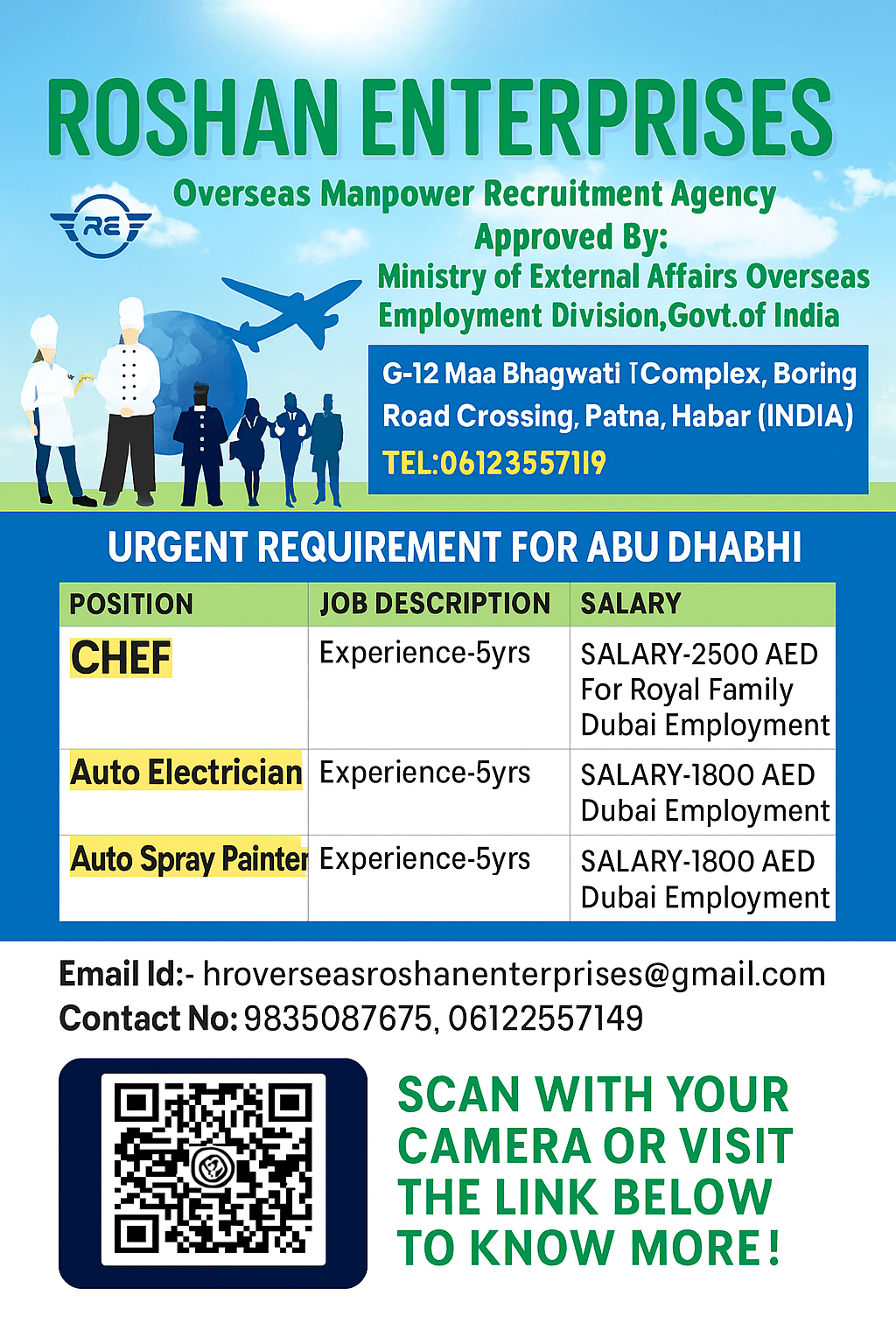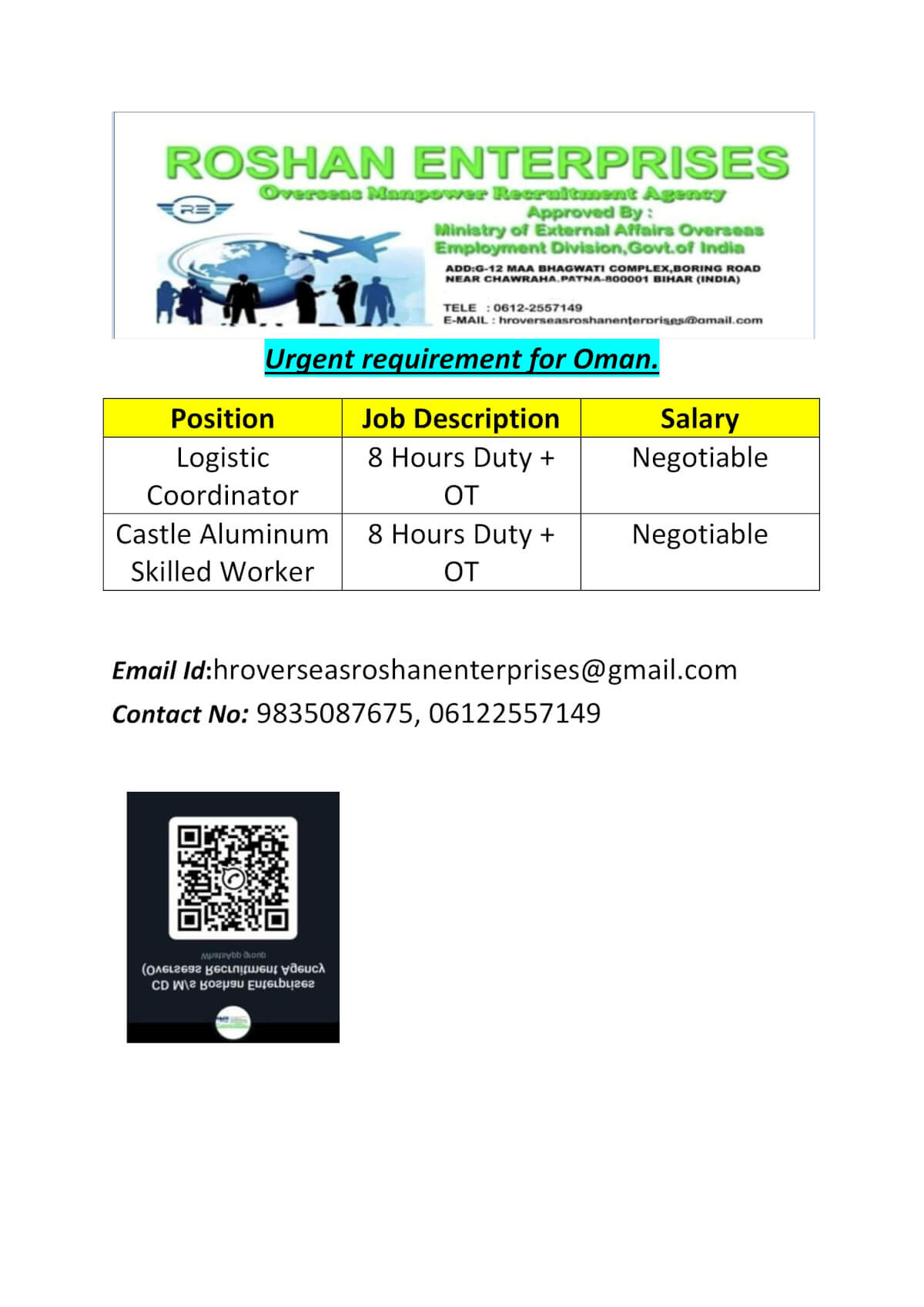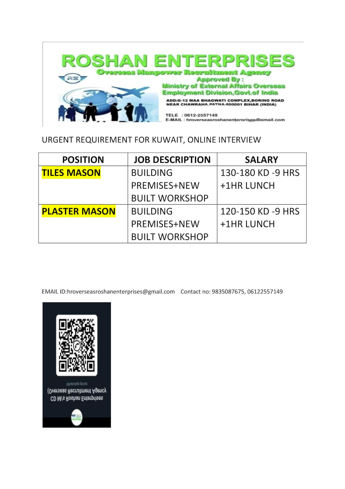 QATAR(DOHA) 1.waiter For Restaurant-1200/ QATAR RIYAL-FREE FOOD 2. SERVICE CAPTAIN 1500/-1700/-QATAR RIYAL FREE FOOD 3.INDIAN...