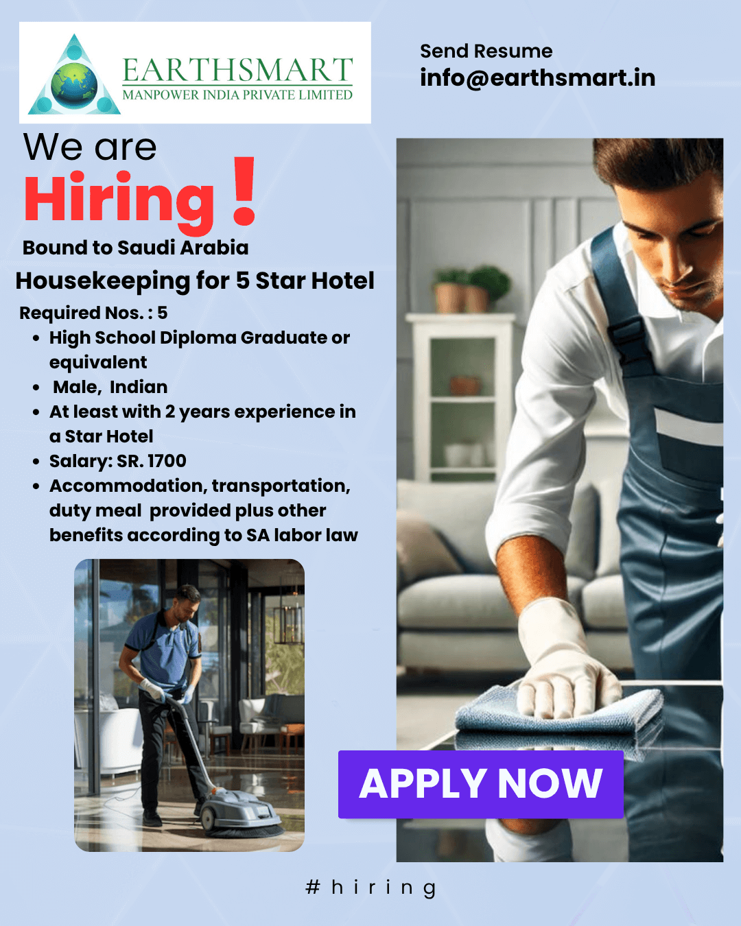 Applicants must have experience in top-class cruise lines, airlines, or 7-star hotels (such as Leela palace, Oberoi, Hyatt, or Marriott, which are highly preferred). Fluency in English is a must.