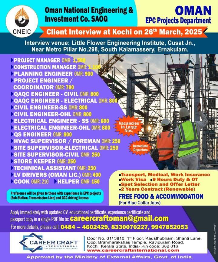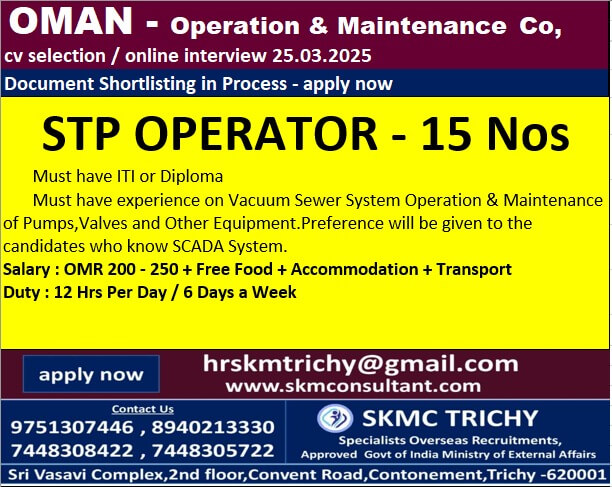 URGENT REQUIREMENT FOR SAUDI ARABIA DREEN CONTRACTING COMPANY CV SELECTION 1?? HVAC TECHNICIAN • Quantity: 10 Nos • Salary: SAR 1700 – 2200 • Duty Hours: 8 Hours 2?? ELEVATOR TECHNICIAN...