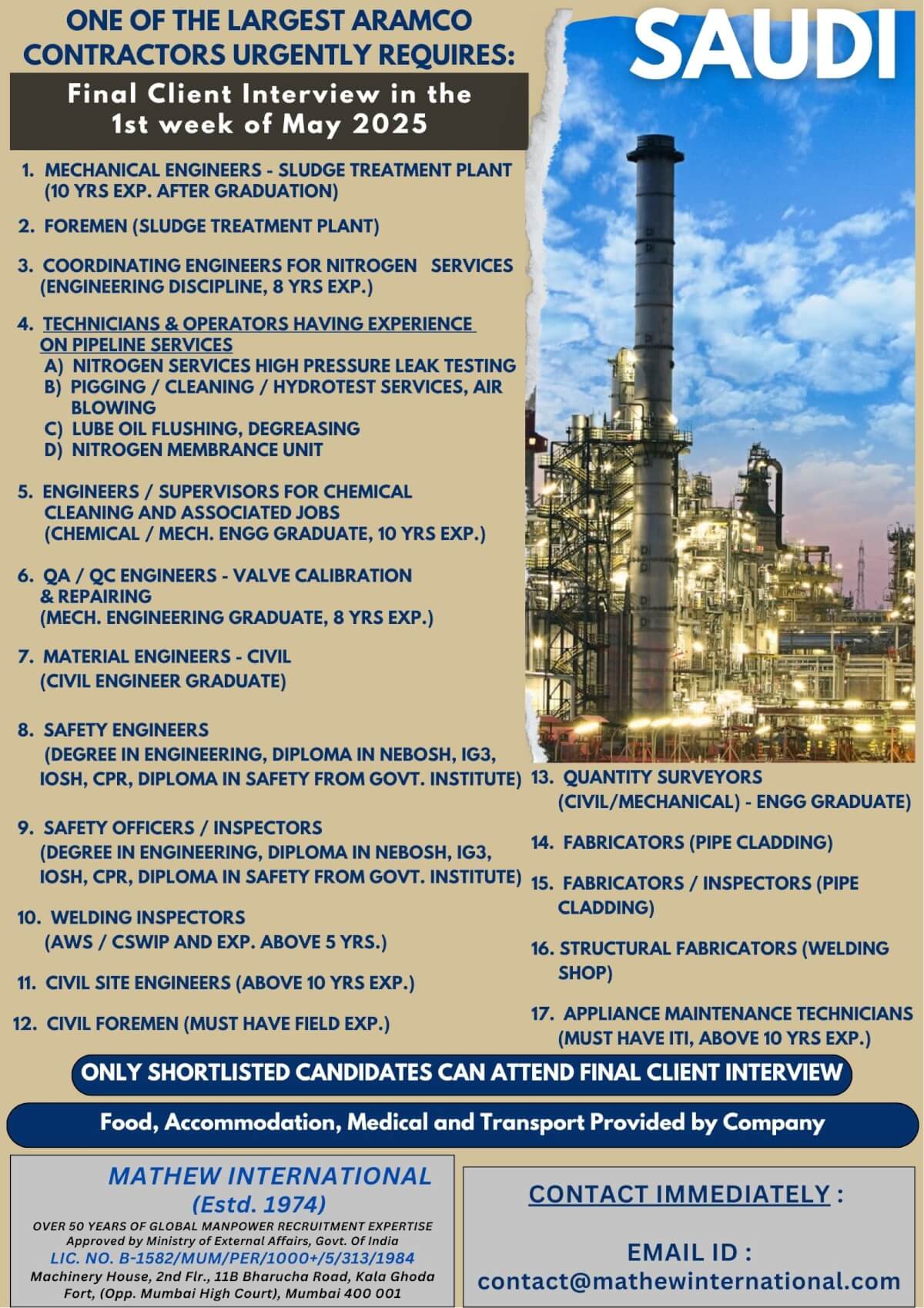 Jobs by:MATHEW INTERNATIONAL