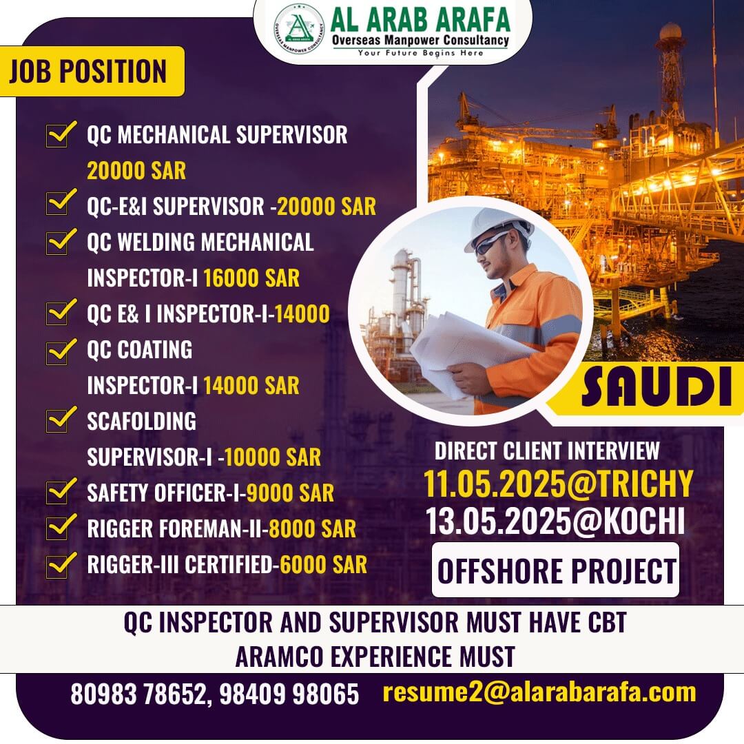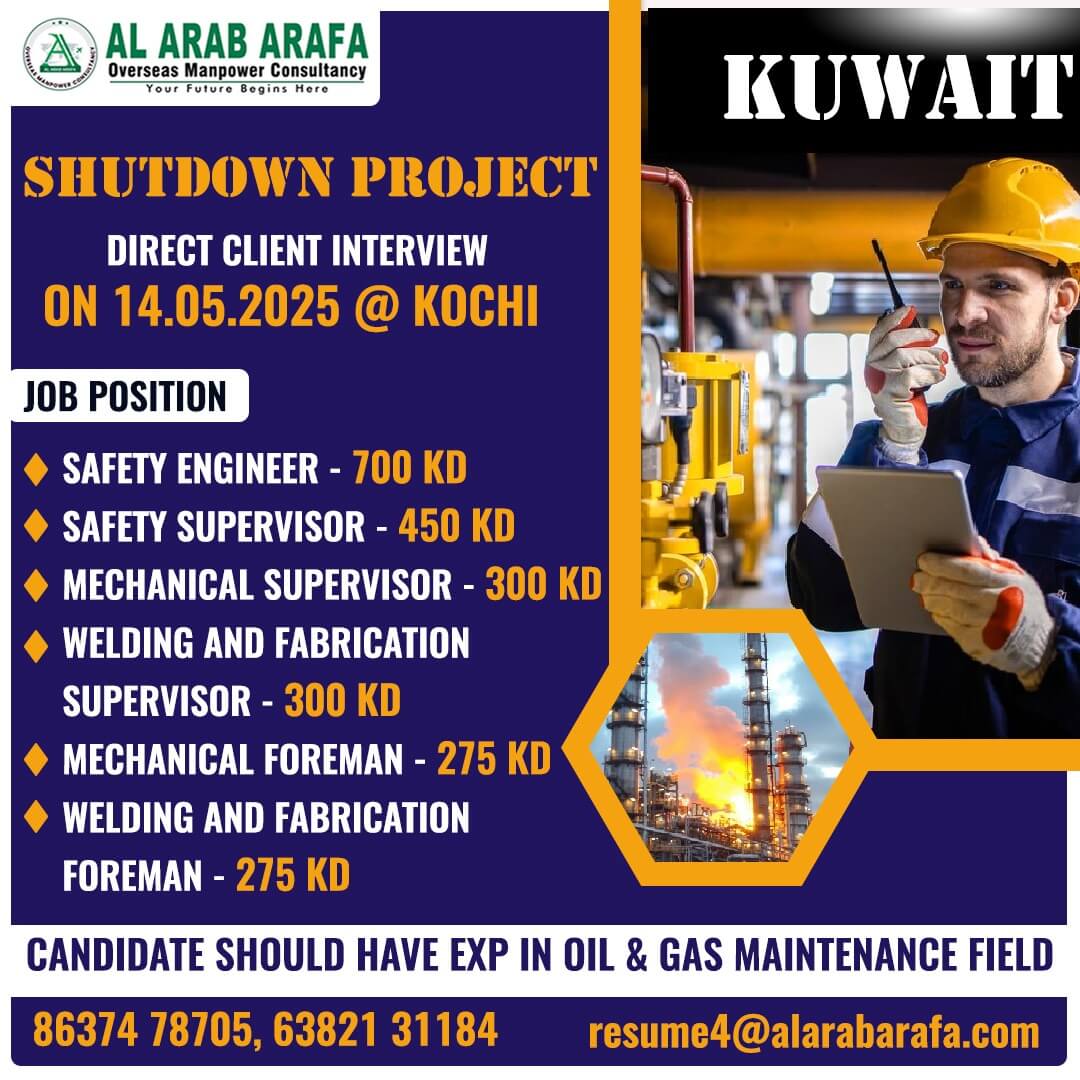 FURTHER DETAILS KINDLY CONTACT MS GAYATHRI : 8610502389 resume5@alarabarafa.com