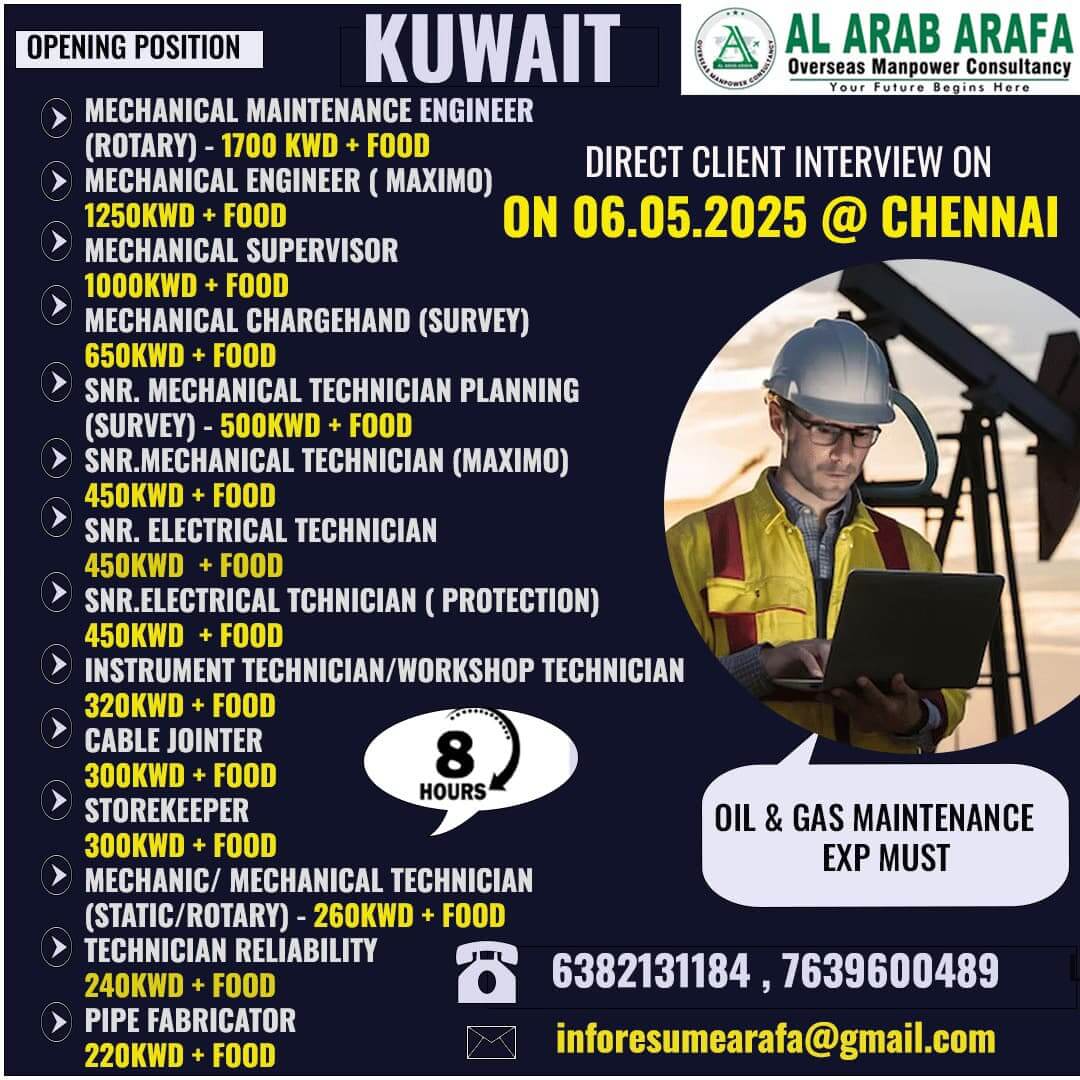 FURTHER DETAILS CONTACT MS.KALISH - 9840998065 EMAIL ID - resume3@alarabarafa.com