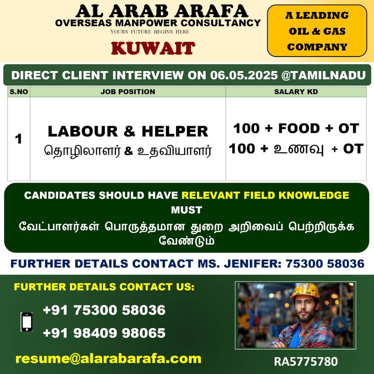 FURTHER DETAILS CONTACT MS.KALISH - 9840998065 EMAIL ID - resume3@alarabarafa.com