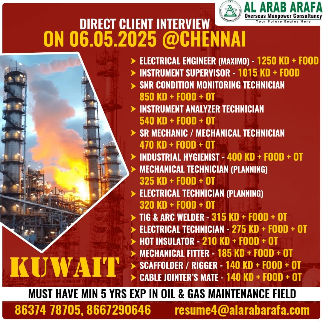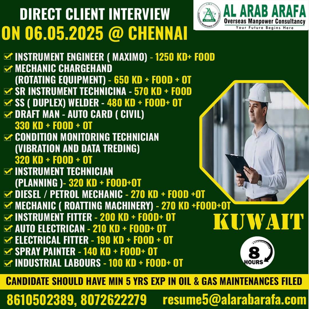 FURTHER DETAILS KINDLY CONTACT MS KALISH : 9840998065 resume3@alarabarafa.com