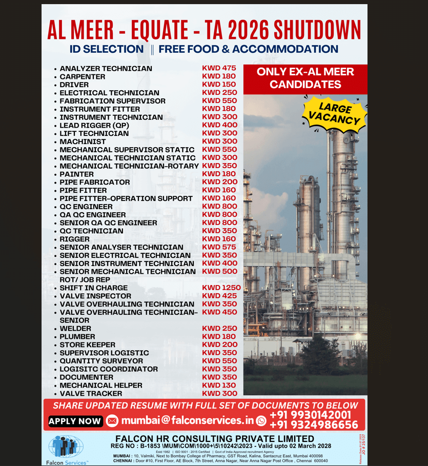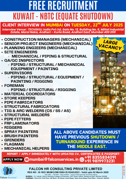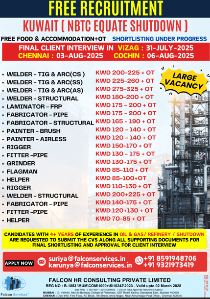 ? Kuwait Hiring – Long Term Opportunity Shortlisting is now in progress for multiple technical roles in one of Kuwait’s leading industrial projects