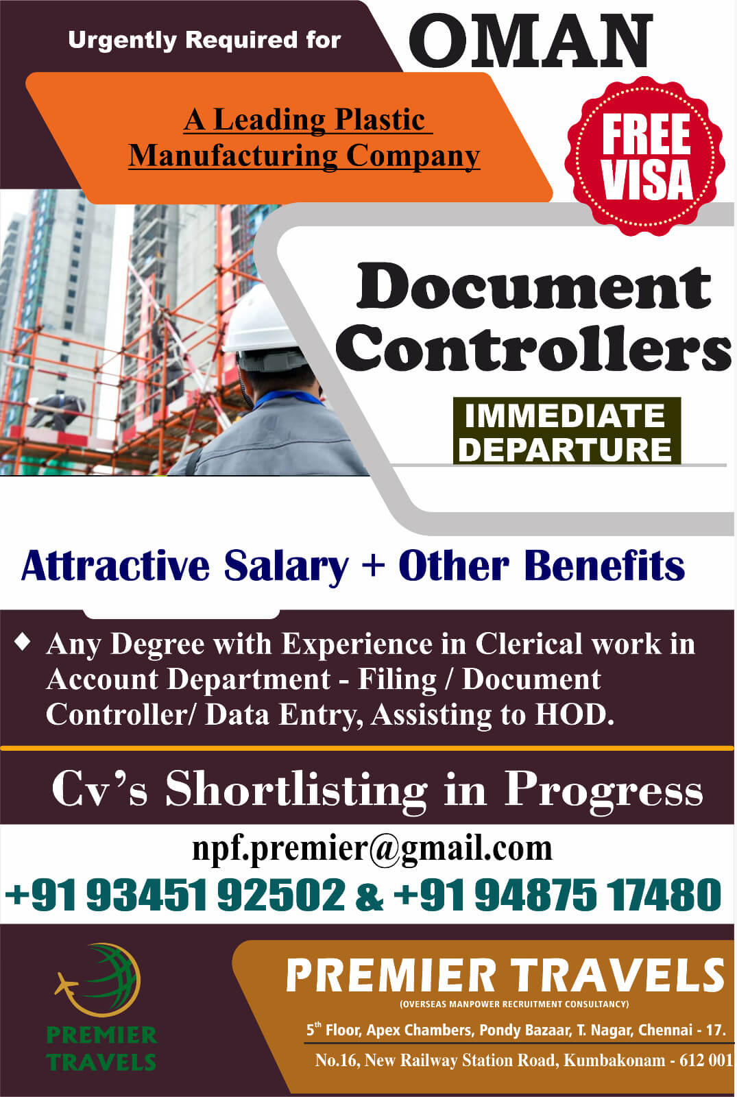 Jobs by:PREMIER TRAVELS