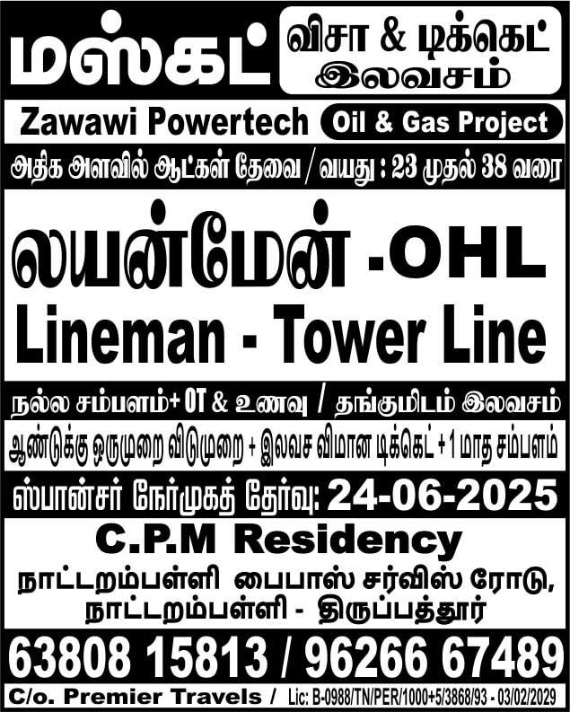 Please refer the image for your reference. Interested and Suitable candidates send your updated resume.