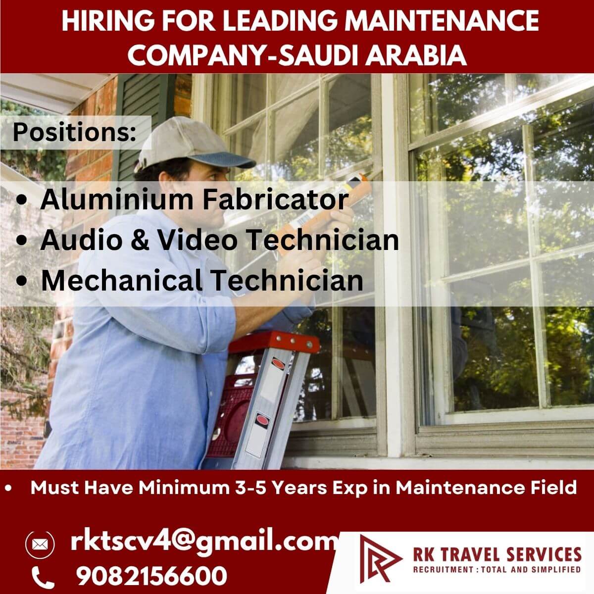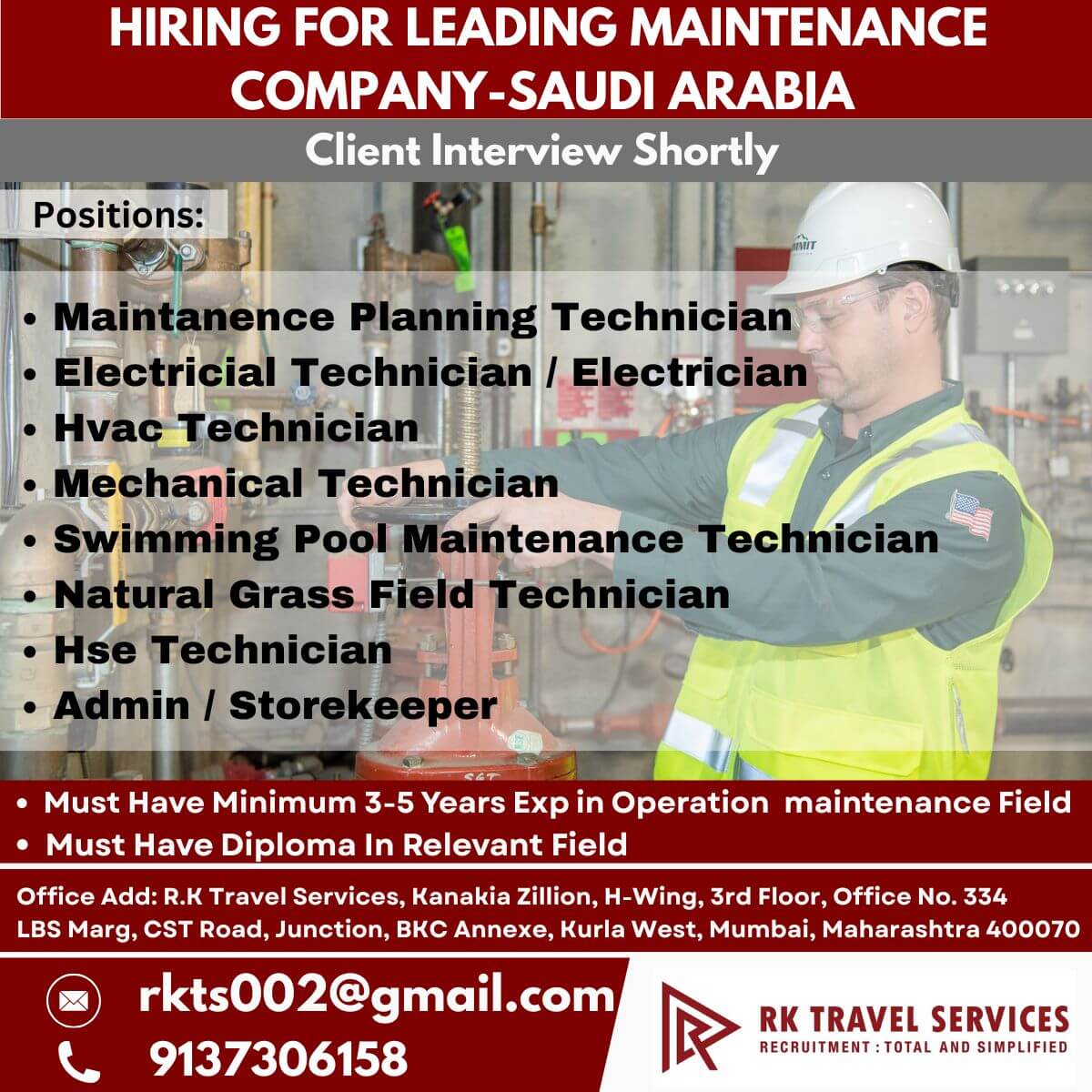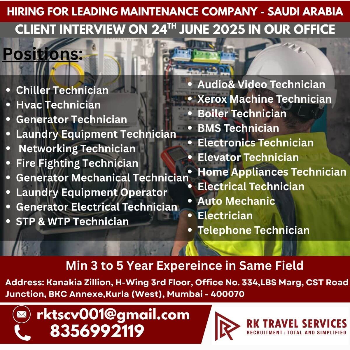 AC Technician Audio & Video Technician CAFM Customer Service Specialist Electrician Silo Cleaners Senior Supervisor