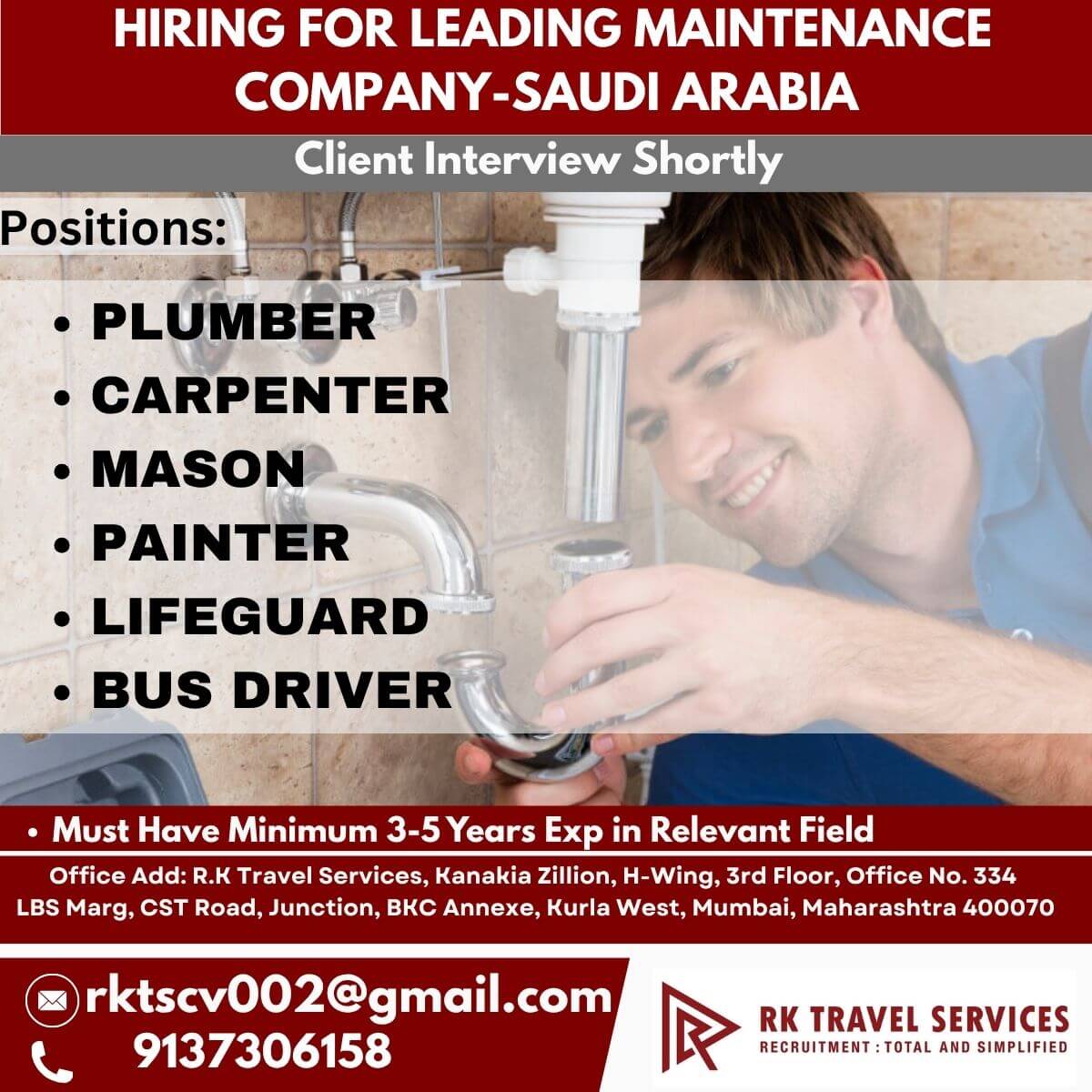 WORKSHOP SUPERVISOR3500-4000 SR HEAVY EQUIPMENT MECHANIC (POCLAIN, FORKLIFT, SHOVEL, CRANE)2500-3000 SR DIESEL MECHANIC (6 CYLINDER)2000-2200 SR AUTO MECHANIC (HEAVY VEHICLES)2000-2500 SR