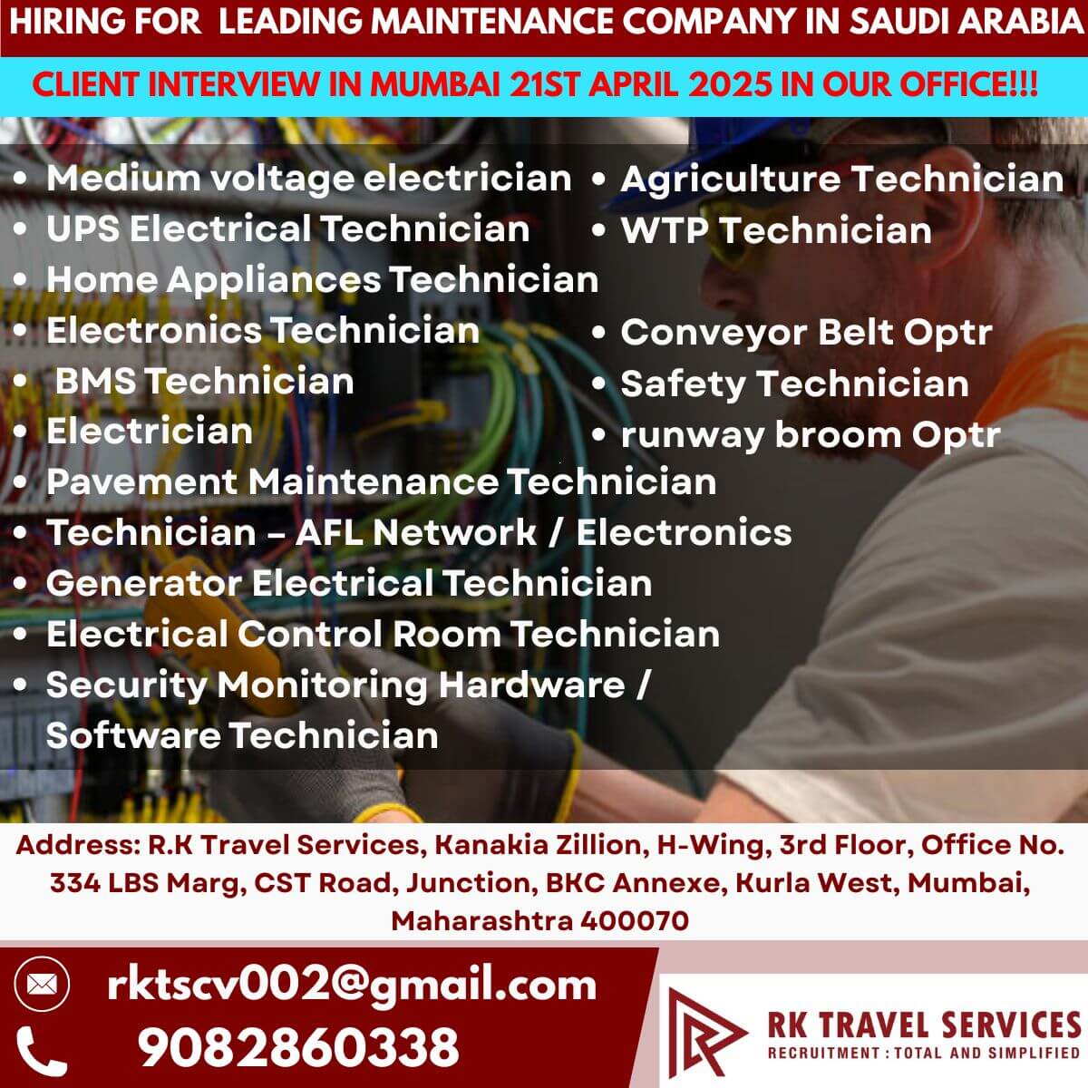 WANTED FOR DUBAI – DIRECT EMPLOYMENT VISA CLIENT INTERVIEW Positions: Mechanical Fitter / Rigger Signalman Salary: Fresher AED 1100 | Experienced AED 1300–1400 Benefits: Free Accommodation, Free Transportation, Food Allowance AED 300 Contract: 2 Years | Age: 22–35 |...