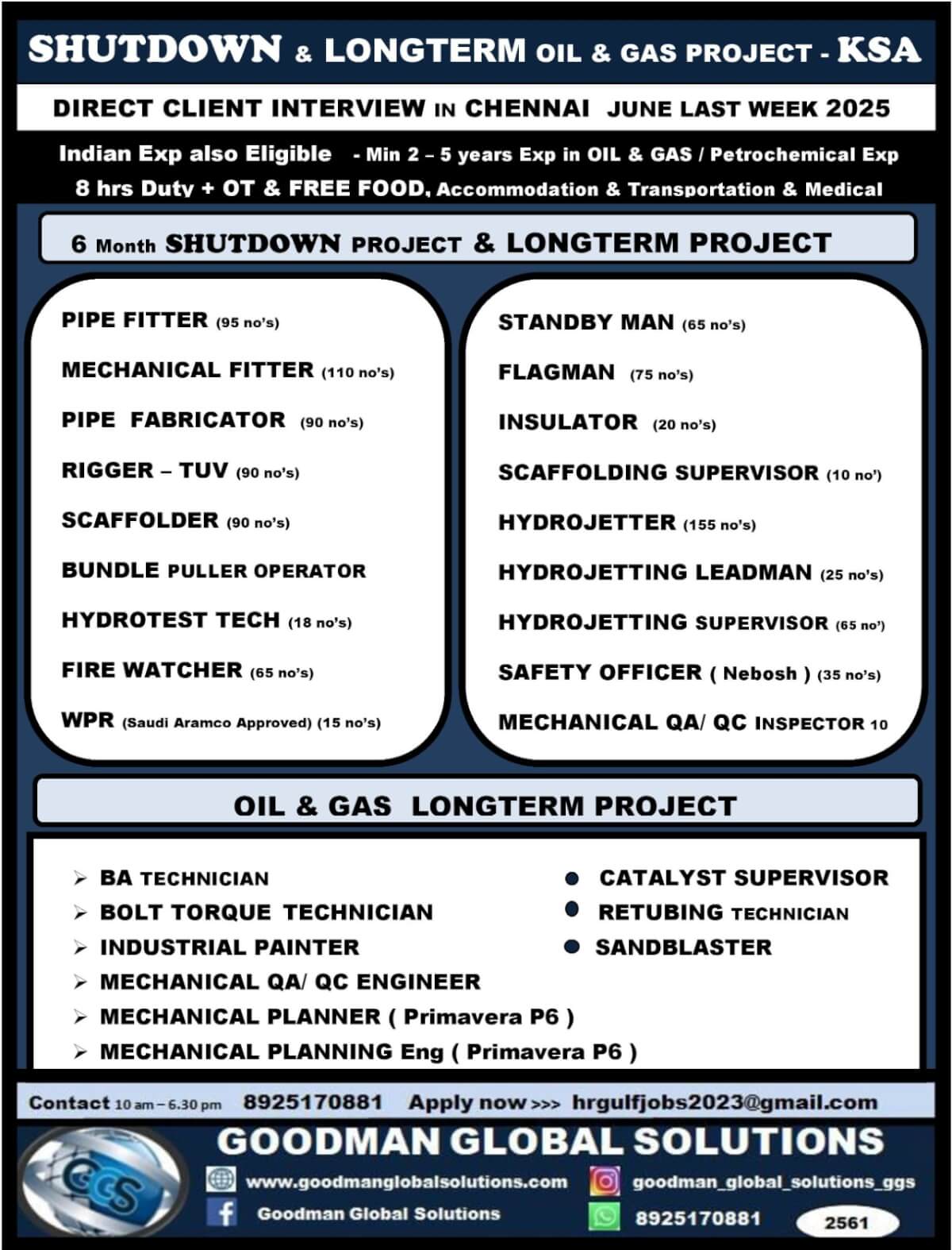 EQUATE SHUTDOWN – TISD - KUWAIT SHUTDOWN PROJECT - ONLINE INTERVIEW - CV Shortlisting Under Progress CONTACT -7305064086 APPLY NOW>>> ggsrecruiter001@gmail.com SALARY - 550 - 1000 KD + OT - FREE FOOD, ACCOMMODATION, MEDICAL &...