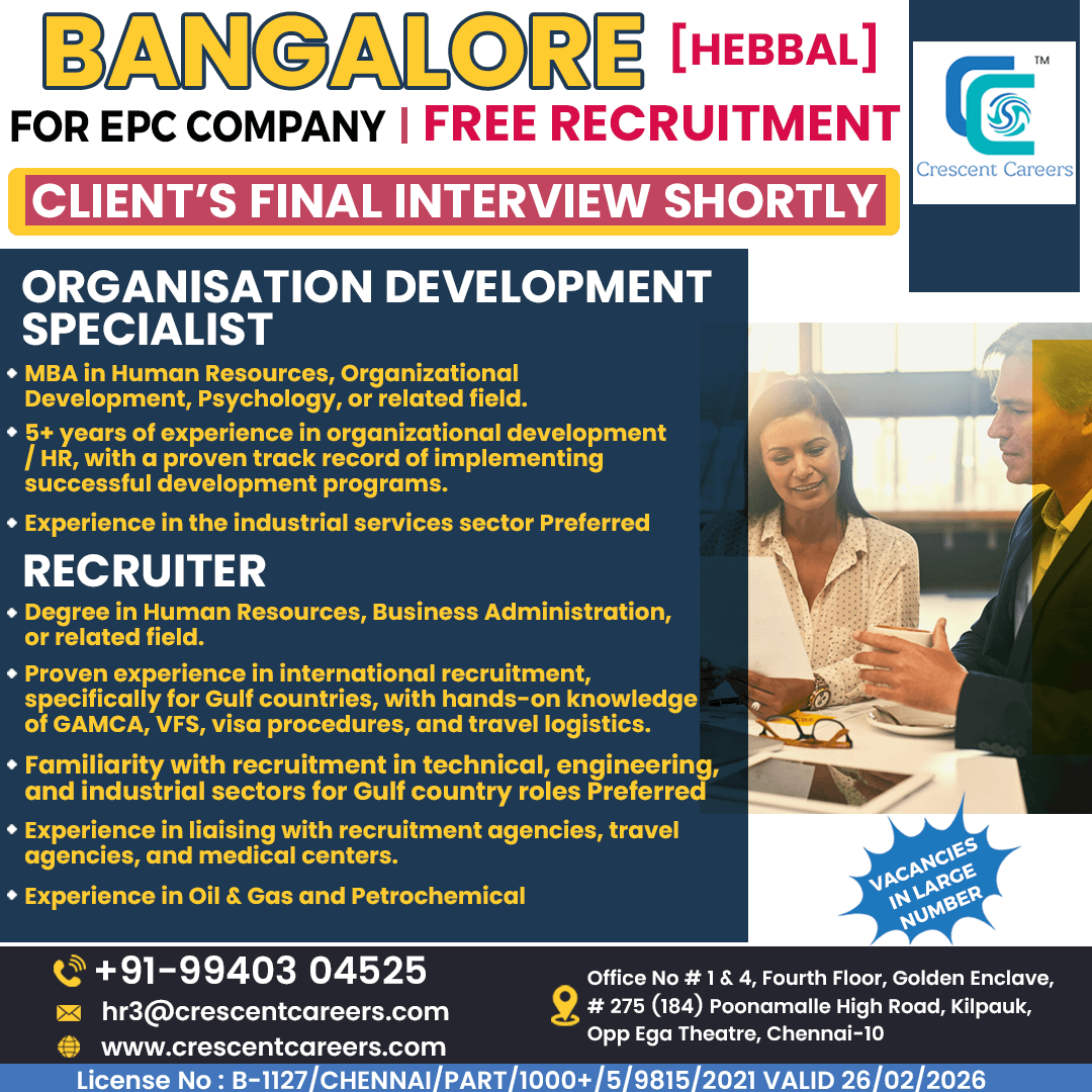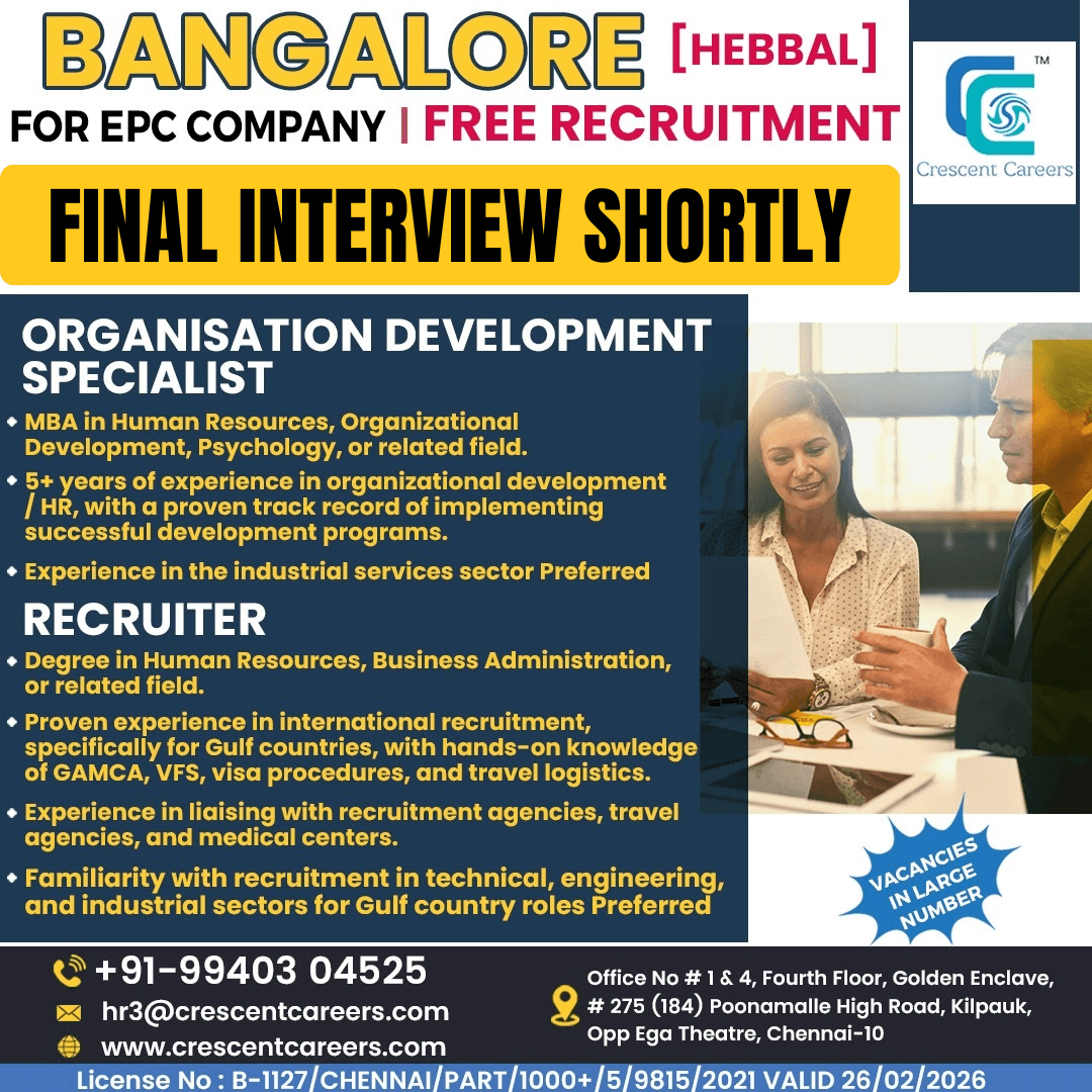WALK-IN CLIENT'S FINAL INTERVIEW AT TRICHY, CHENNAI, VIZAG