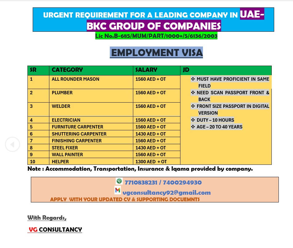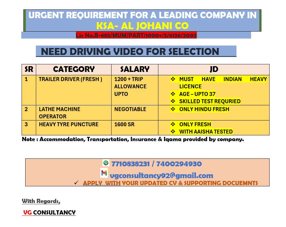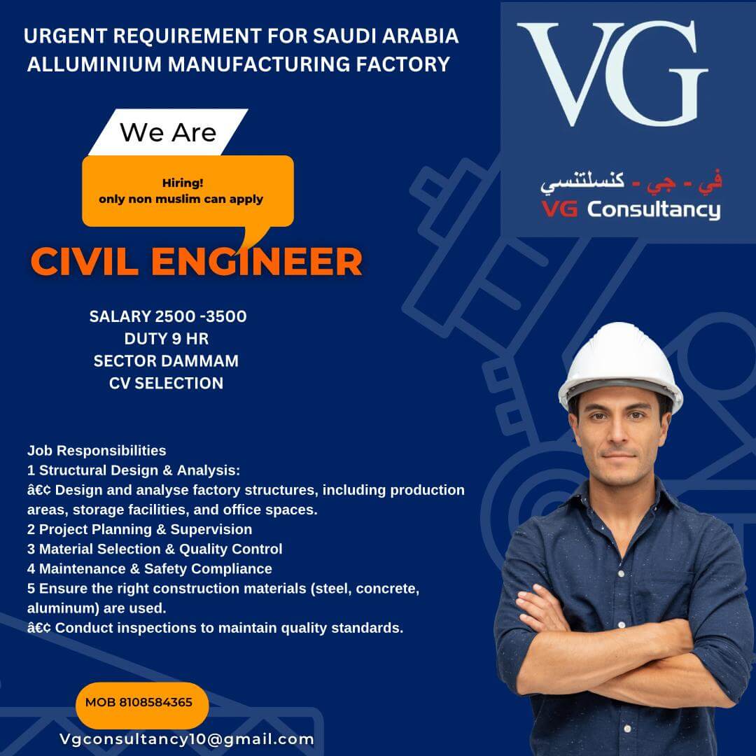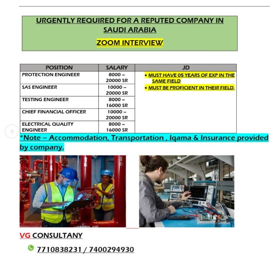 URGENT REQUIREMENT FOR SAUDI ARABIA Position: Solar Battery Maintenance Technician No. of Vacancies: 3 Location: Dammam, Saudi Arabia Company: Al Rowaished General Contracting (ARAMCO Contractor) Salary: 2500 – 3000 SAR Duty: 9 Hours/day +...