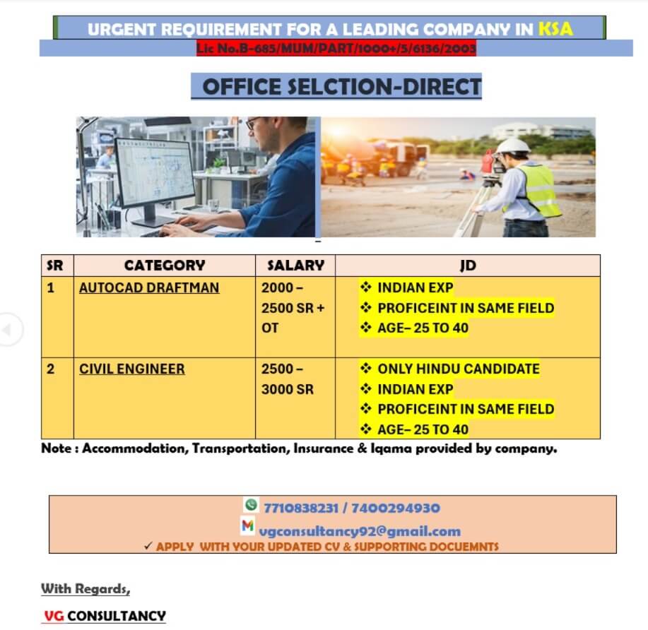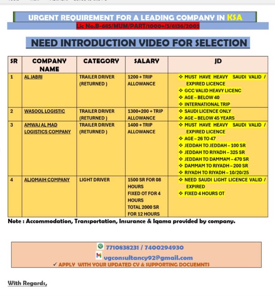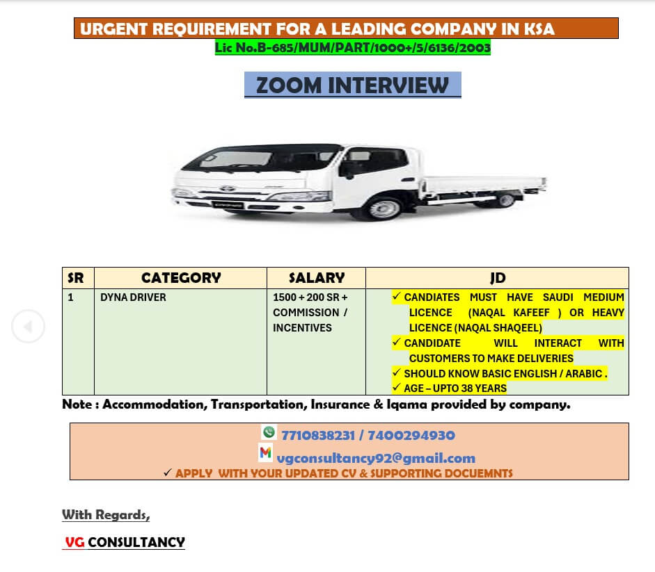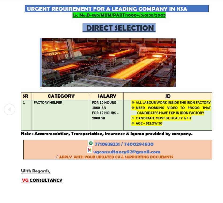 URGENT REQUIREMENT FOR SAUDI ARABIA Position: Solar Battery Maintenance Technician No. of Vacancies: 3 Location: Dammam, Saudi Arabia Company: Al Rowaished General Contracting (ARAMCO Contractor) Salary: 2500 – 3000 SAR Duty: 9 Hours/day +...