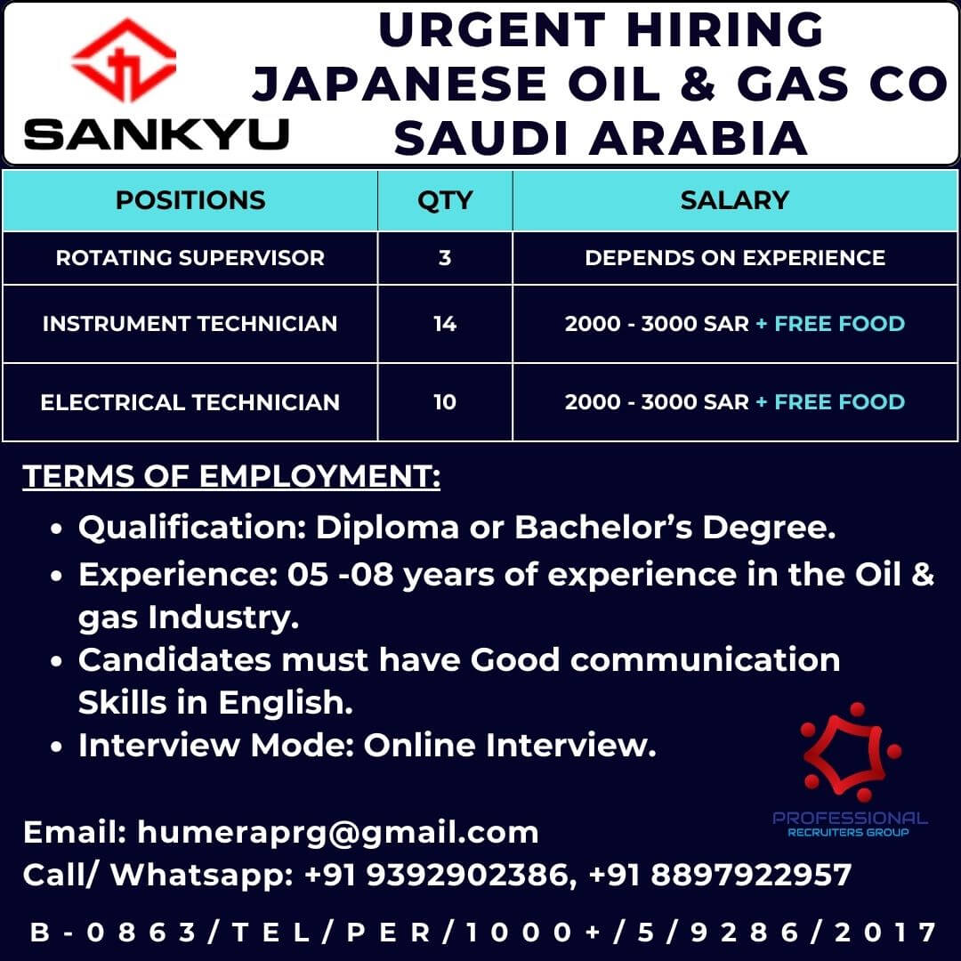 Hiring Alert – Saudi Arabia Excellent career opportunities with great benefits. If this matches your profile, don’t wait—apply now