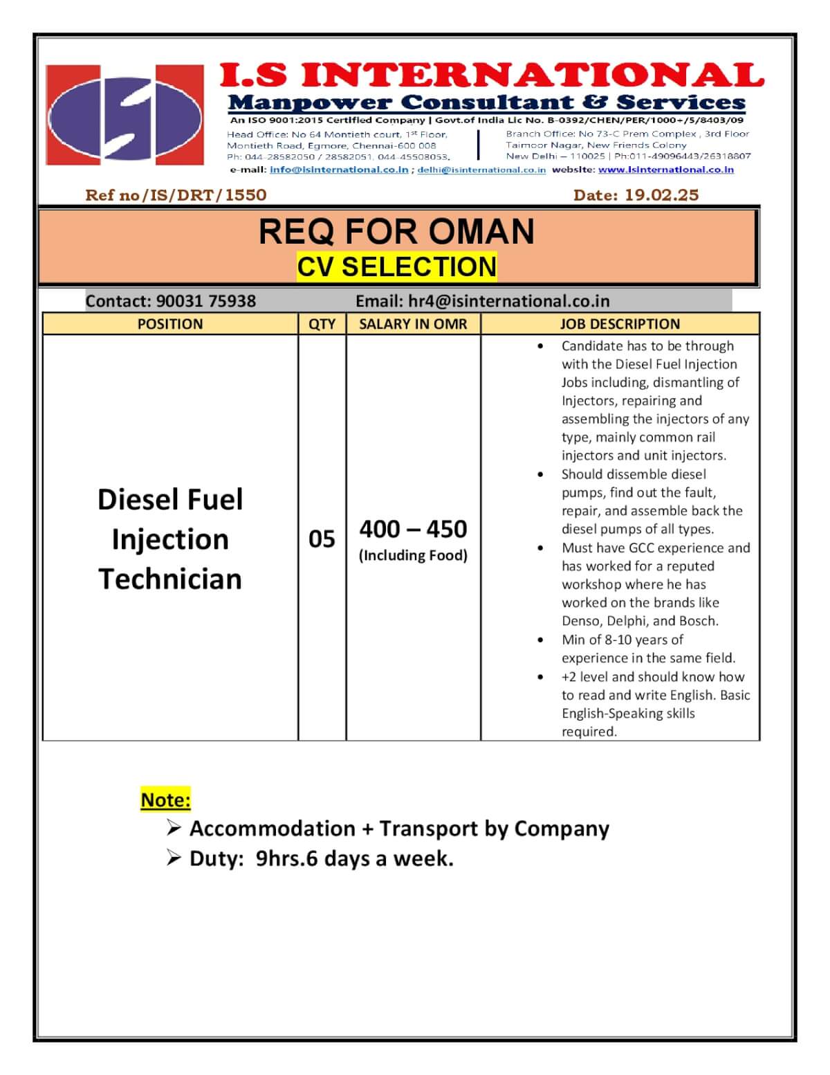 We are an Overseas Recruitment Agency Based out in Chennai Tamilnadu..