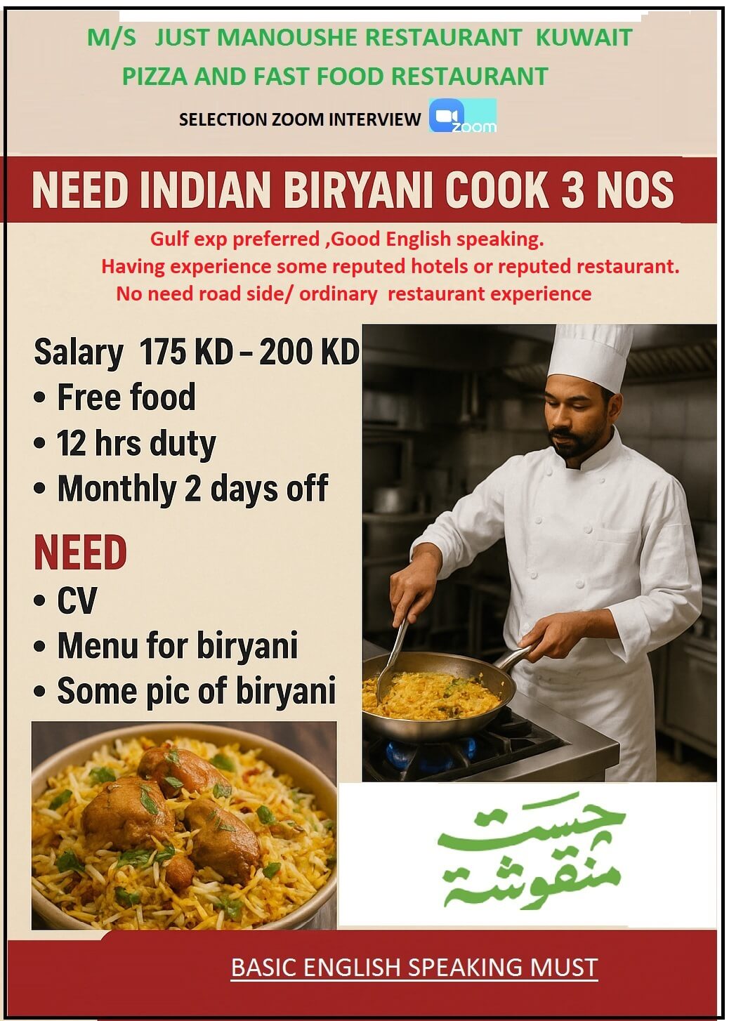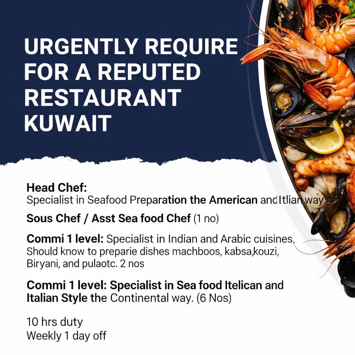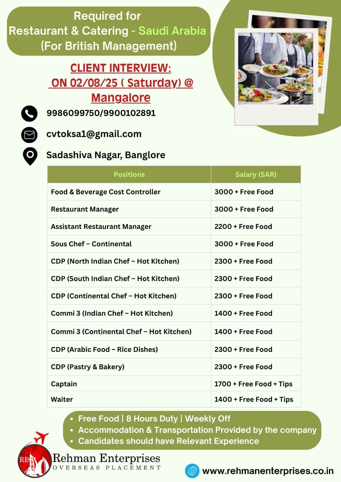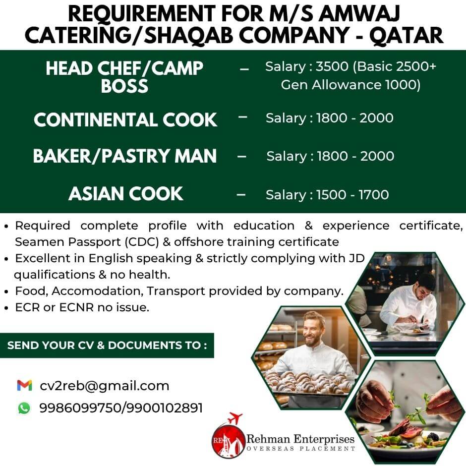 Only Muslims For a 4 and 5 Star Property at QATAR 1)?INTERN WAITRESS/WAITERS: 10 Nos. Sal: QR 1000 + Food on Duty + ot + Accom. 10th pass with BHM. Freshers accepted. Should speak english with good hygene. Who want to get Intership are most welcome. One year contract. Send cv,...