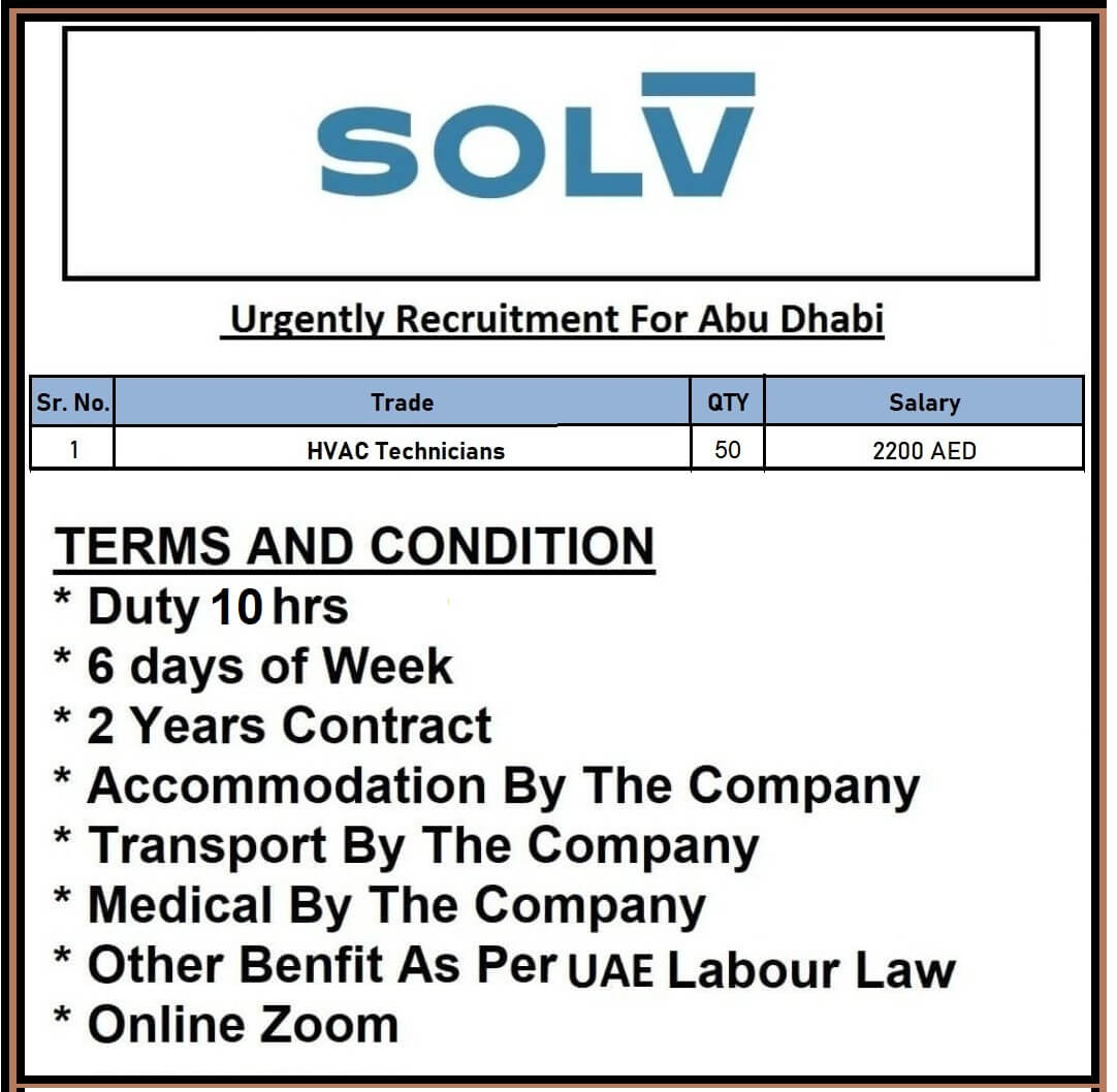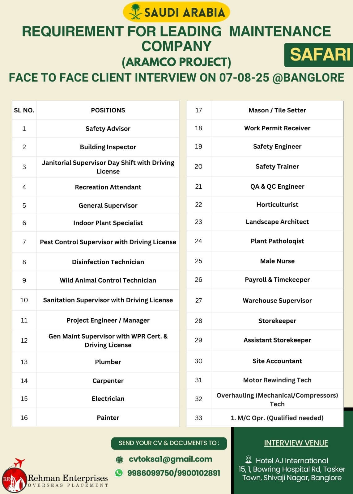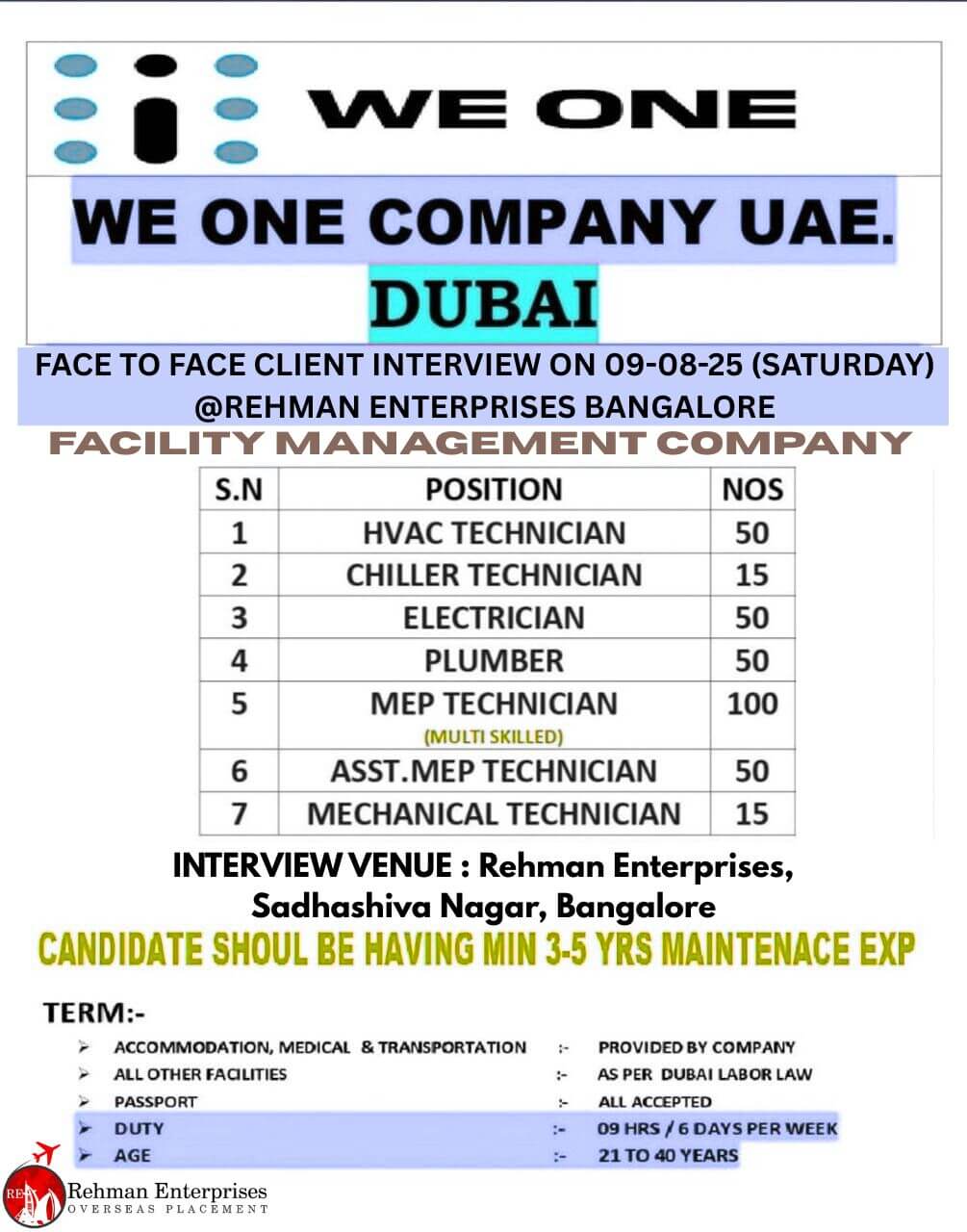 REQUIREMENT FOR A LEADING MAINTAINENCE COMPANY(ESTISALAT) IN DUBAI - ONLINE INTERVIEW-19/12/2025