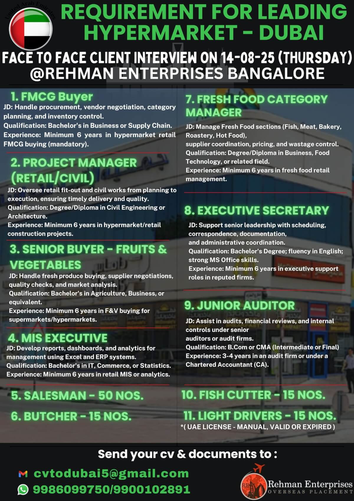 REQUIRED FOR A LEADING SWITCHGEAR COMPANY (ETISALAT) IN DUBAI ONLINE INTERVIEW - 22/12/2025