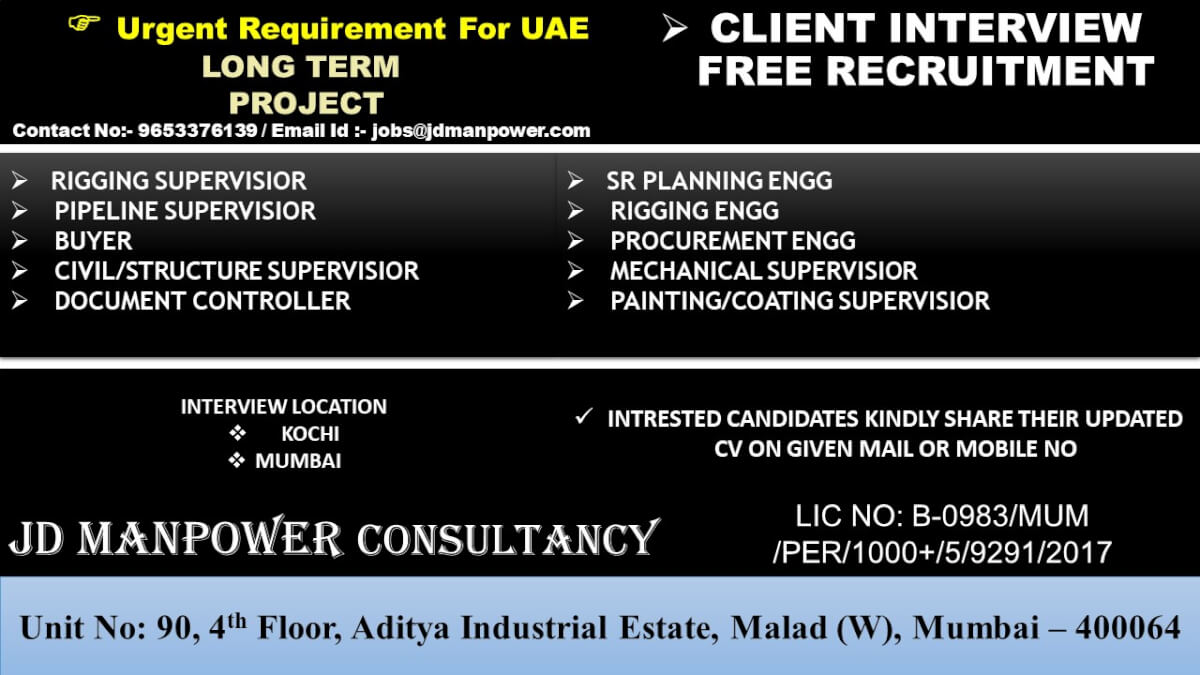 Shrutika from JD MANPOWER CONSULTANCY from mumbai   I do have vacancy for ELECTRICAL & INSTRUMENT  FITTER position in UAE for TECNIMONT ICB    * Job Duration – Long Term * Interview Mode –ONLINE Interview * Mobilization – Immediately *...