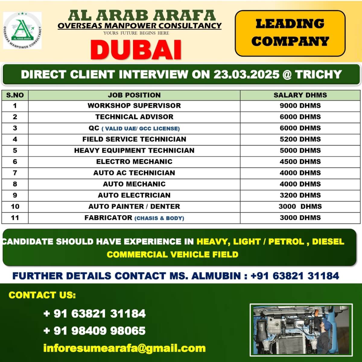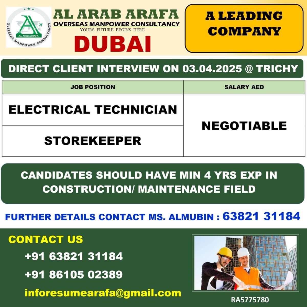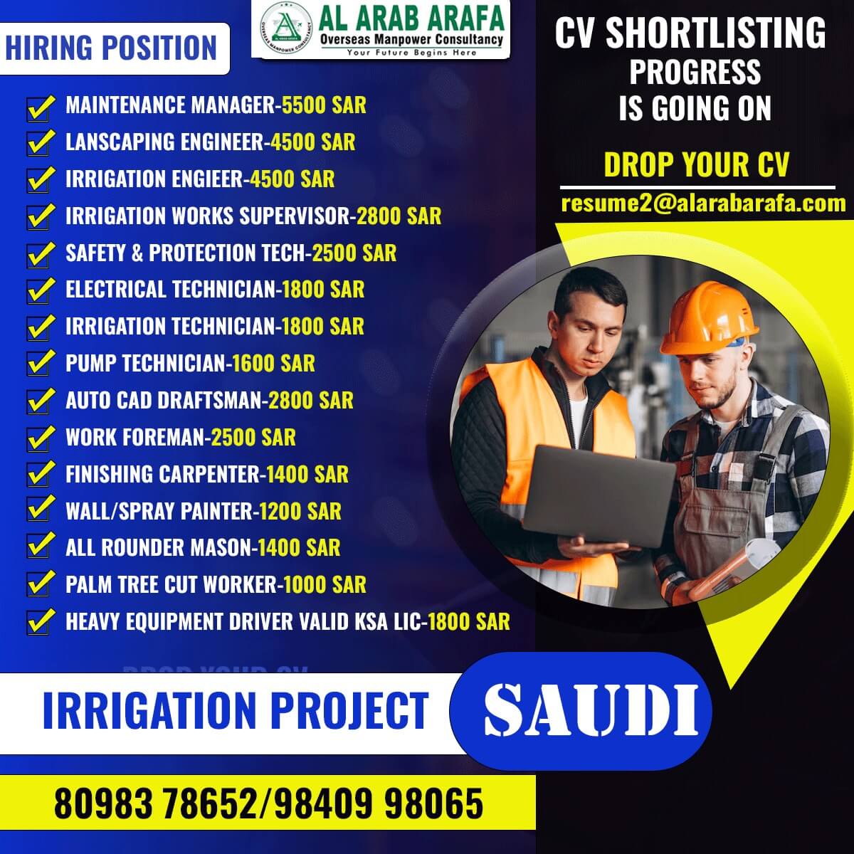 FURTHER DETAILS CONTACT MS.KALISH - 9840998065 EMAIL ID - resume3@alarabarafa.com