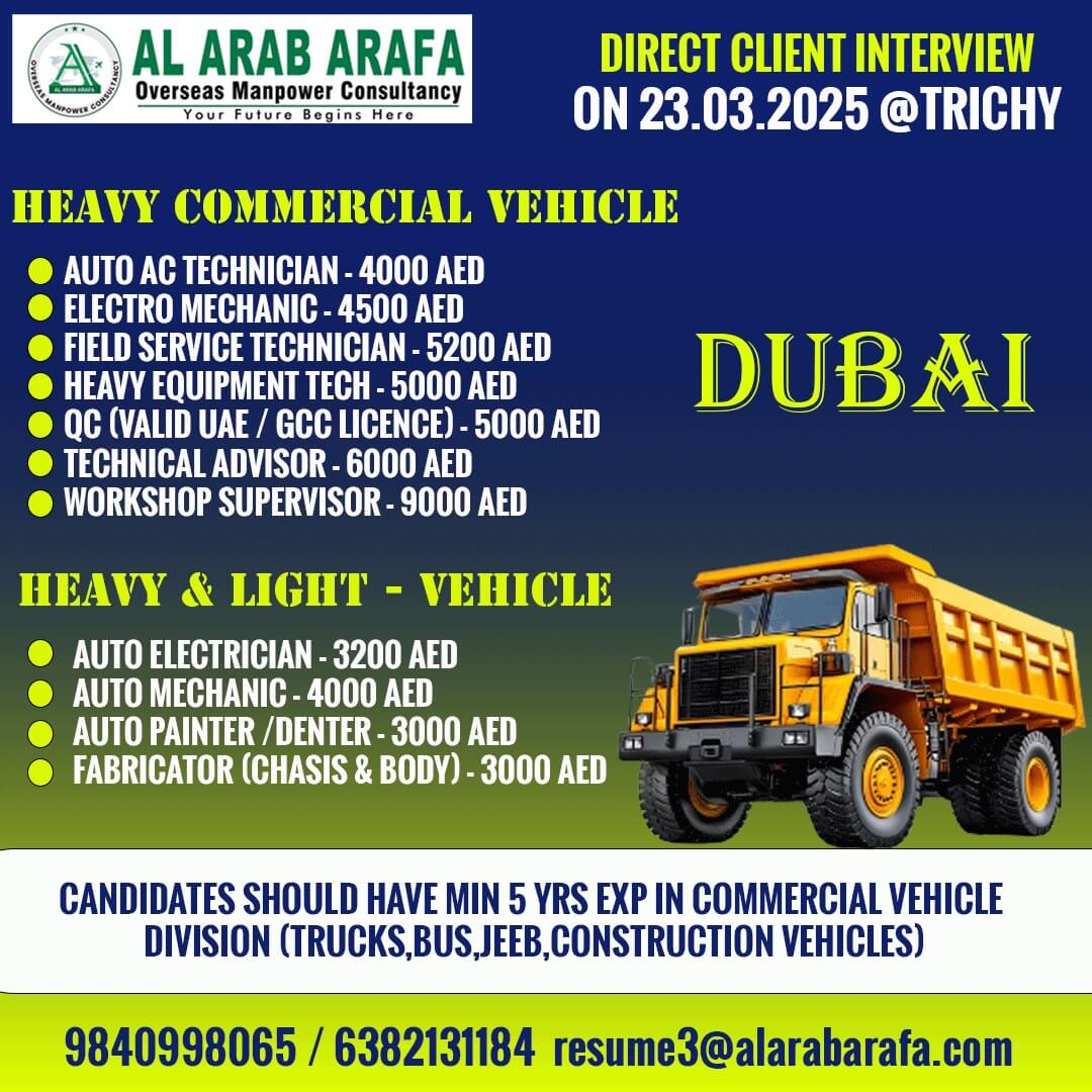 FURTHER DETAILS KINDLY CONTACT MS KALISH : 9840998065 resume3@alarabarafa.com