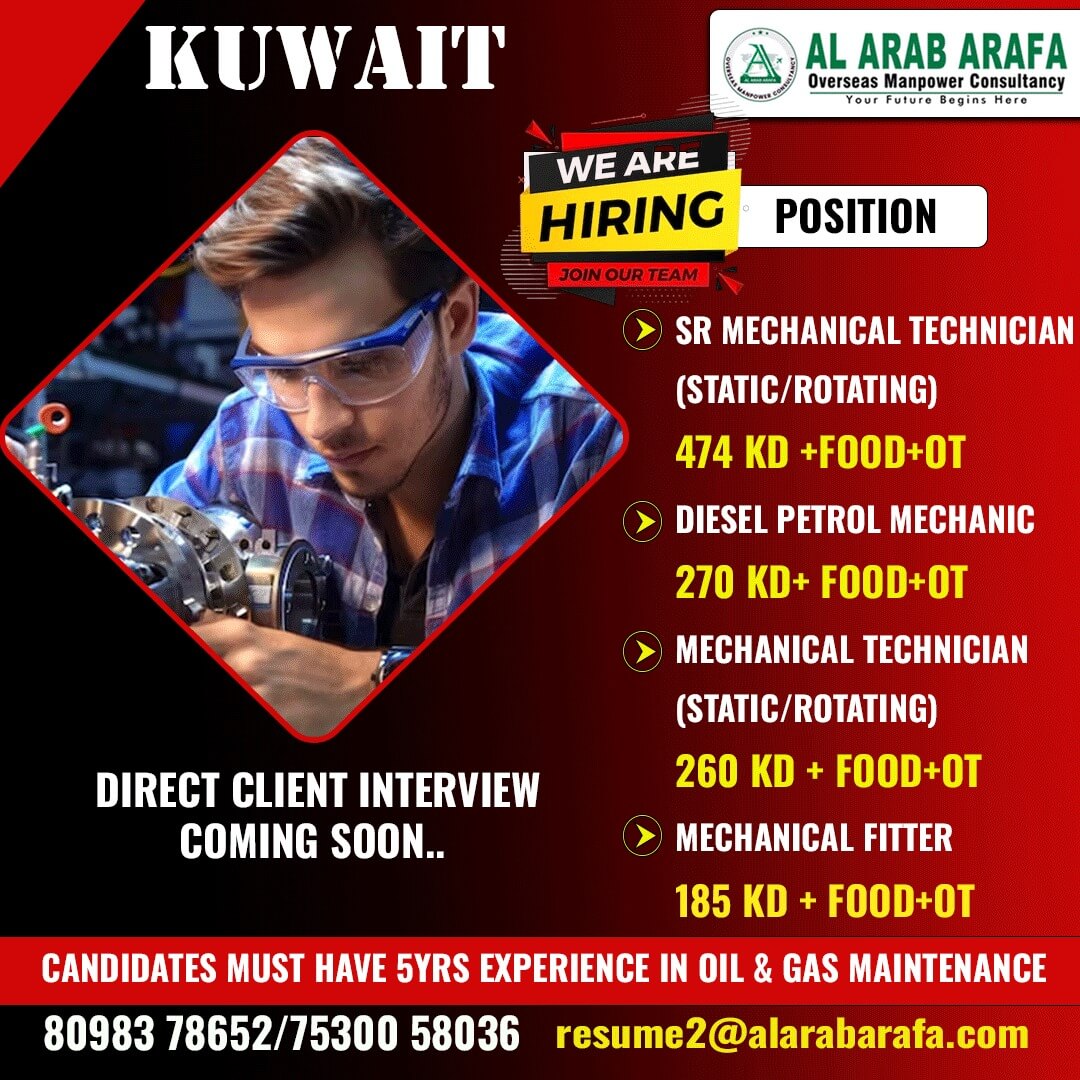 FURTHER DETAILS KINDLY CONTACT MS DIVYA : 7639600489 resume1@alarabarafa.com