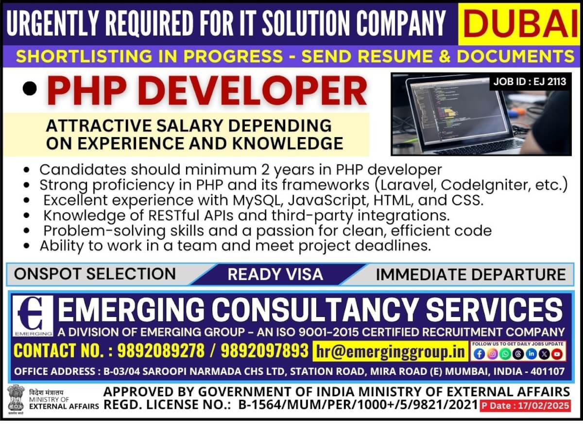 URGENTLY REQUIRED FOR A LEADING INFORMATION TECHNOLOGY (IT) COMPANY – KUWAIT POSITION: FULL STACK WEB DEVELOPER – Job ID EJ-2351 • Front-end: HTML, CSS, JavaScript, React / Vue / Angular • Back-end: Node.js, PHP, Python, or Java • Database: MySQL, PostgreSQL,...