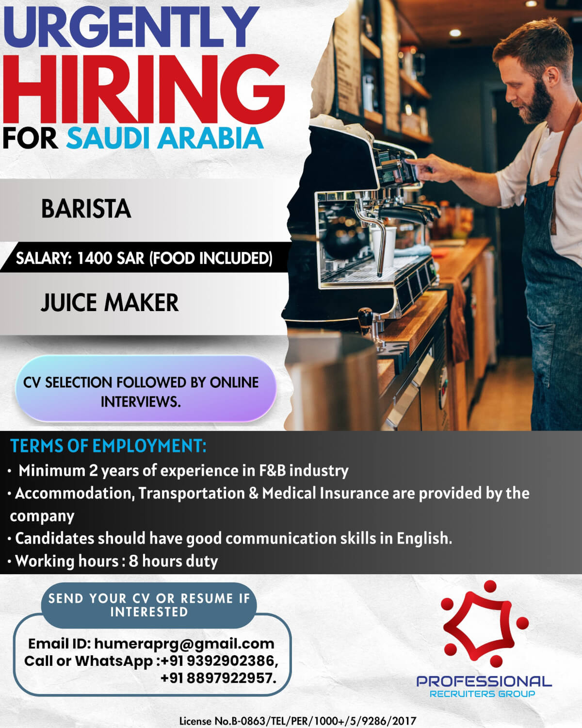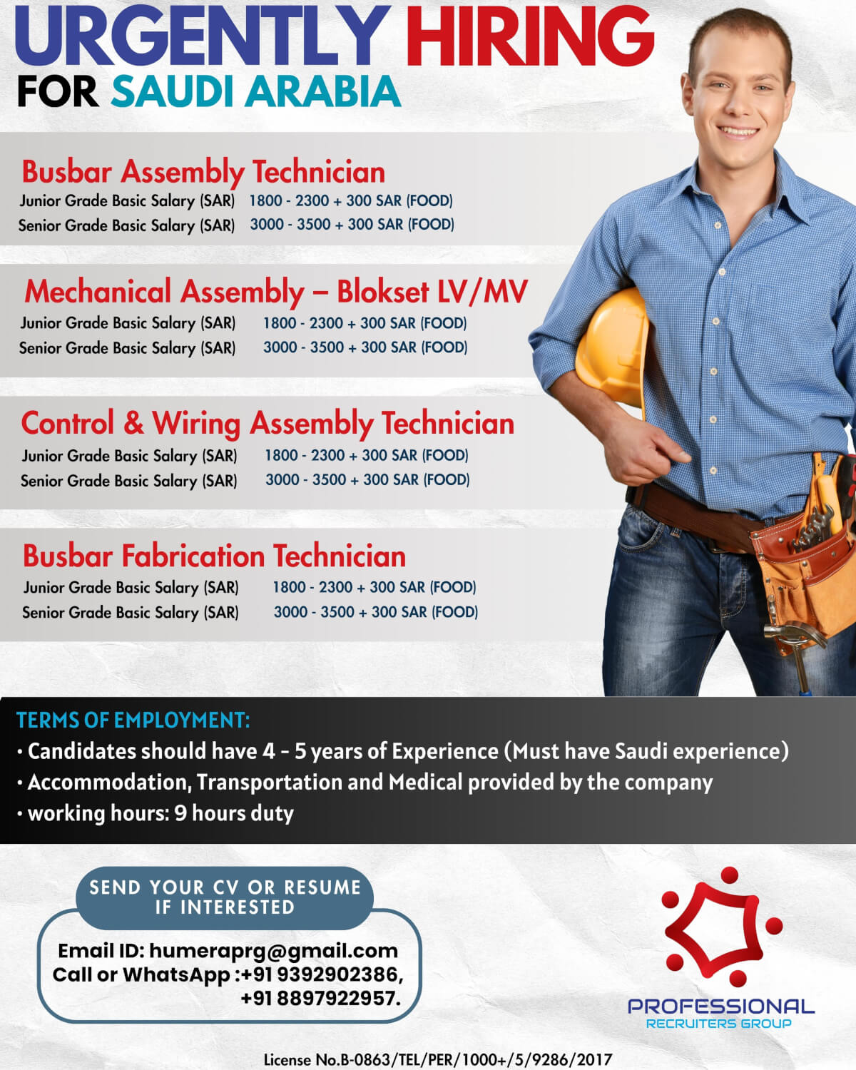 Hiring Alert – Saudi Arabia Excellent career opportunities with great benefits. If this matches your profile, don’t wait—apply now